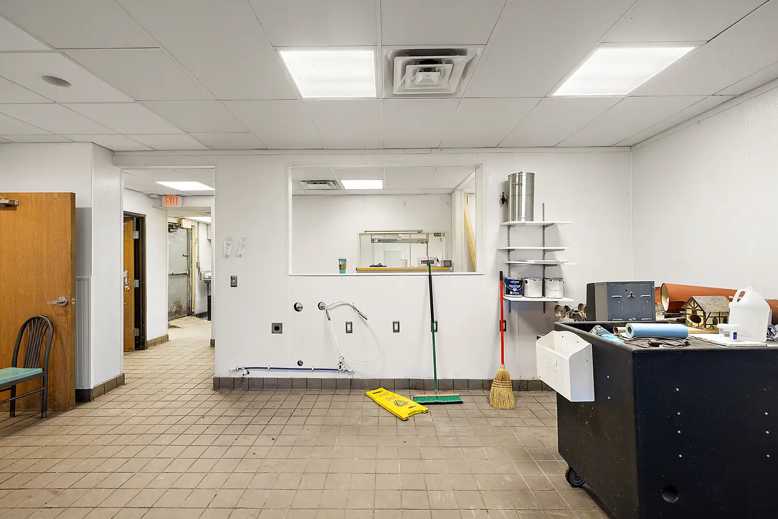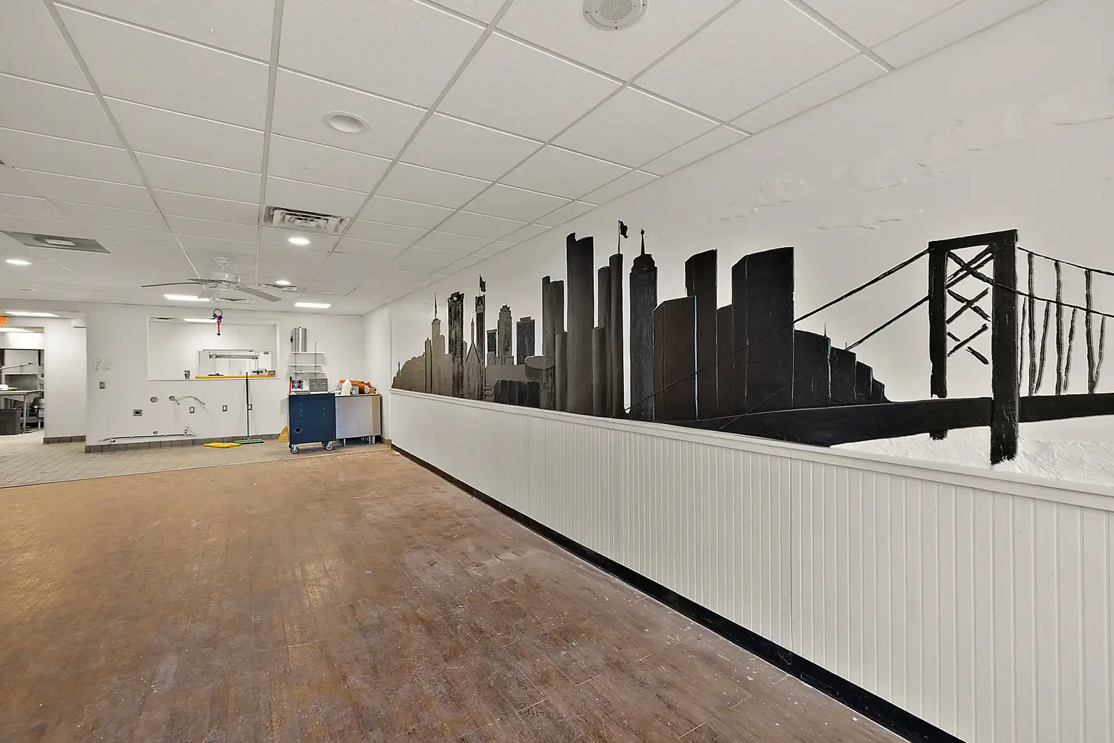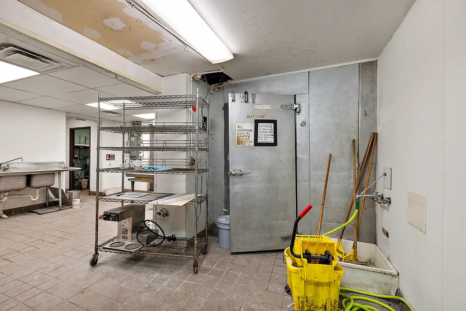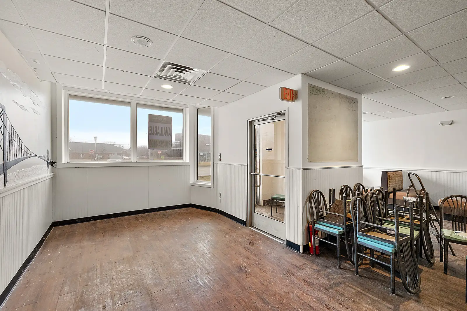 - Some kitchen infrastructure still in place: walk-in cooler, 2 hood vents (8’ and 4’), three-compartment sink, grease trap and dishwasher station.