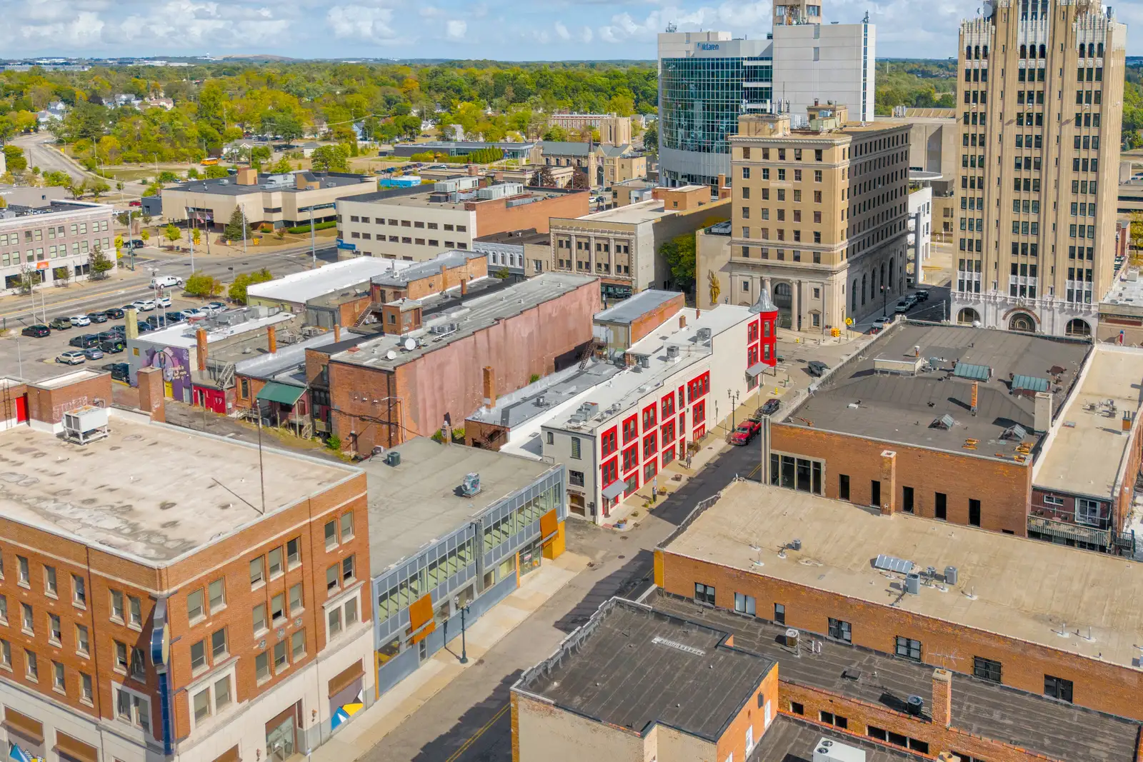 Situated at the intersection of North Saginaw and Lawrence, this restored historic building anchors the heart of Pontiac’s downtown corridor. Its corner placement offers unmatched visibility and accessibility.