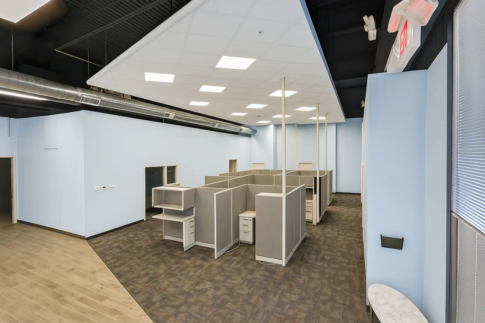 Multiple cubicles set up or can be removed for a showroom