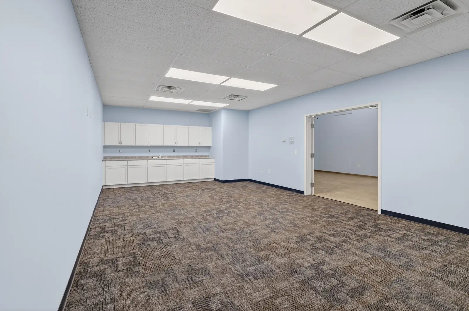 Large Conference room with built in cabinets and counter