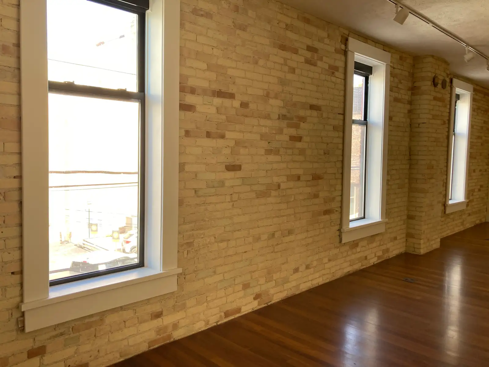 Very high quality Downtown, second floor office space. Competitively priced relative to other downtown offices. Open feeling with lots of glass and exposed brick. Three private offices, reception area, kitchen / coffee area. The balance is open workspace to be modified as offices or cubicles. Beautiful wood floors. New furnace installed October 2025. Fully wired for Audio system & speakers. EPS monitored for smoke, fire alarm, movement and door security. Taxes and Insurance approx. $2.25 per sq ft.