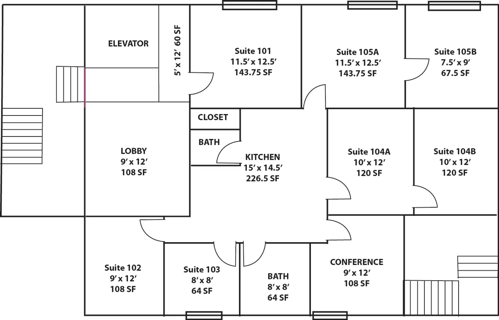 | Suite 103 | 1 | $295 /Month | 65 SF | available |