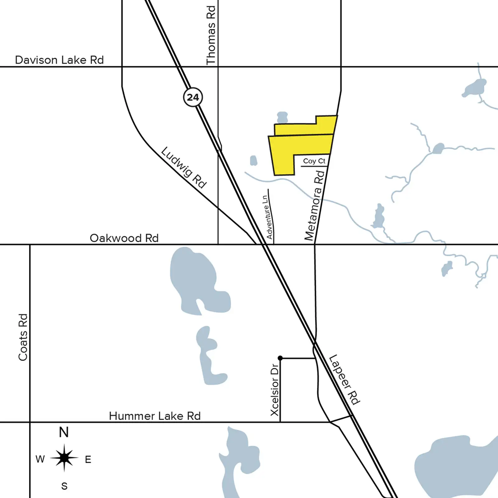 24 stall horse farm could be beneficial to a buyer. Golf course across the street. Rolling land. Close to Lapeer Road which connects Lapeer and Metamora to Auburn Hills and Orion Twp.