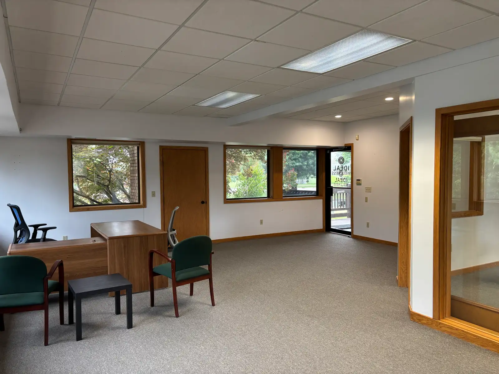 Two private entrances for flexible access - Kitchen -Potential To Divide Into Two Suites - Ample Natural Light - Efficient Layout - High Visibility - Directly across from Delta Dental Headquarters