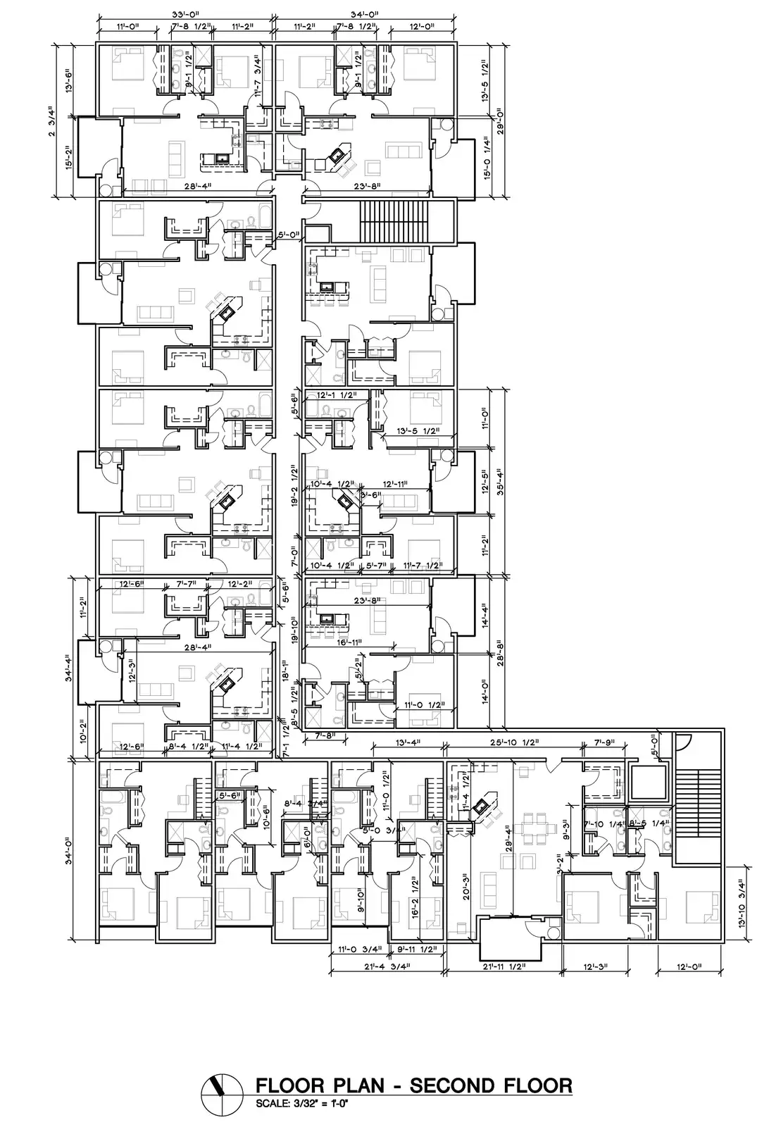 - Second Floor - 9 units - five 2 bedroom/2 bath, two 1 bedroom/1 bath, two 2 bedroom/1bath