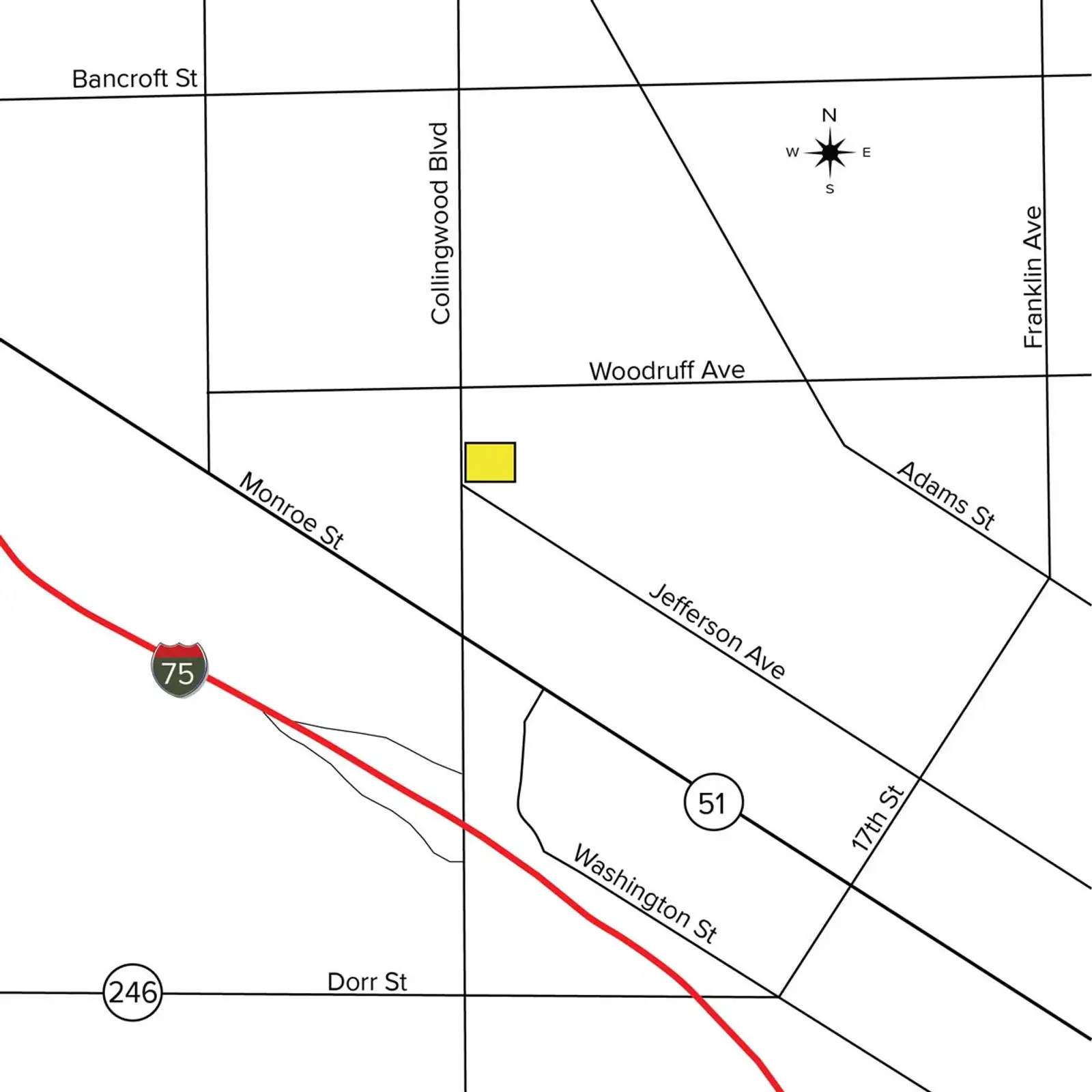 Highly visible location near The Toledo Art Museum, Mercy College, Executive Towers, The Hillcrest, and the gateway to Downtown and Uptown.Close to I-75 (0.50 mile) and I-475 (2.45 miles).This property is in a HUB zone. The Historically Underutilized Business Zones (HUBZone) program helps small businesses in urban and rural communities gain preferential access to federal procurement opportunities.Seller would like an easement for maintenance next door.