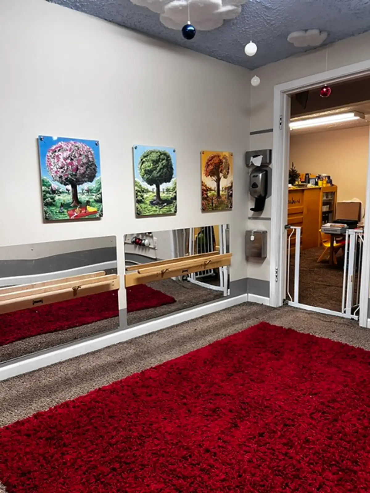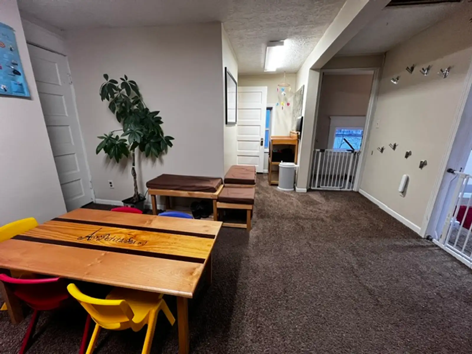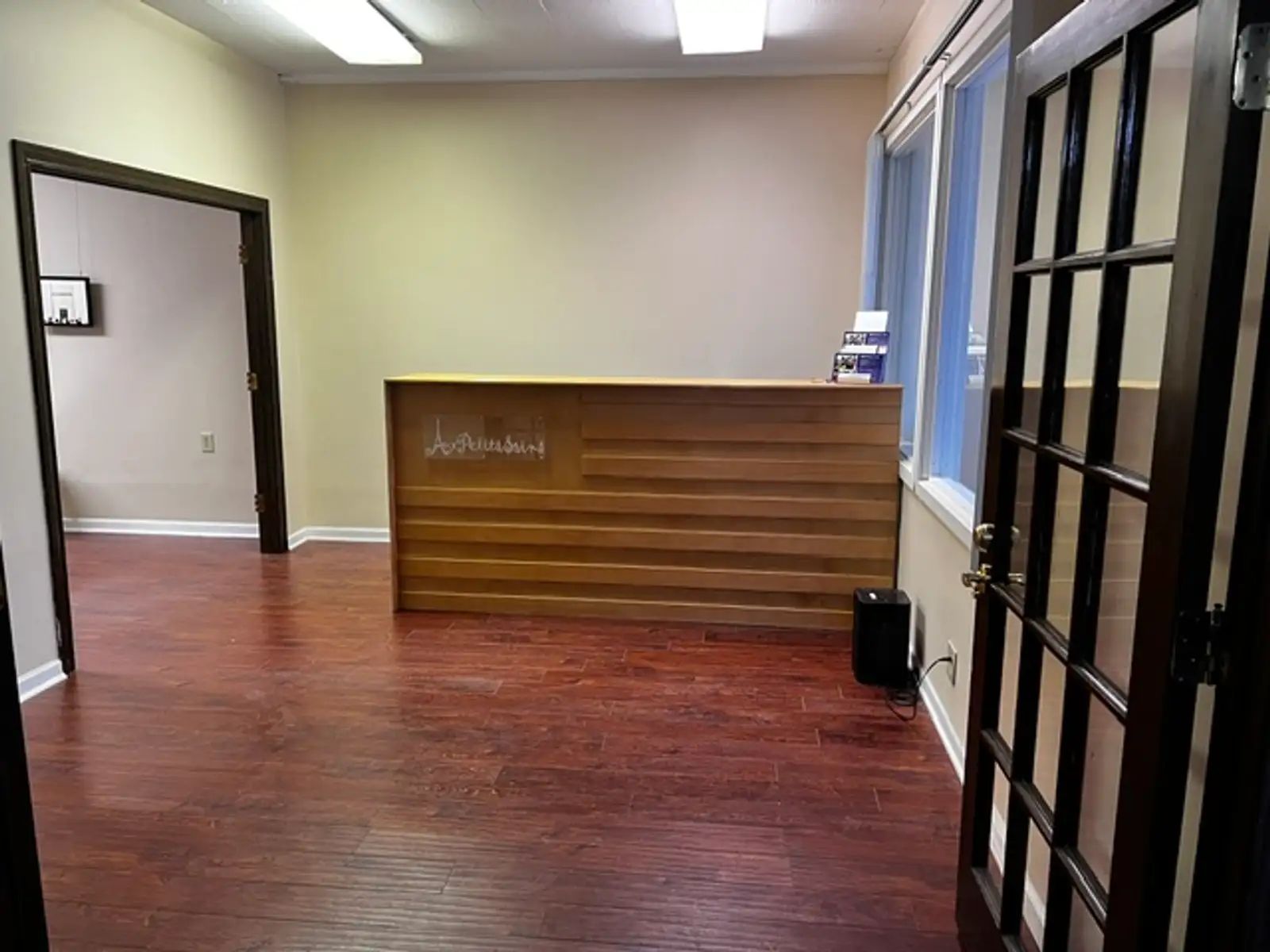 • Suite G: Approximately 1,439 sq. ft. on the lower floor, offering an open layout with two storage rooms. This space is meticulously maintained with luxury vinyl flooring.