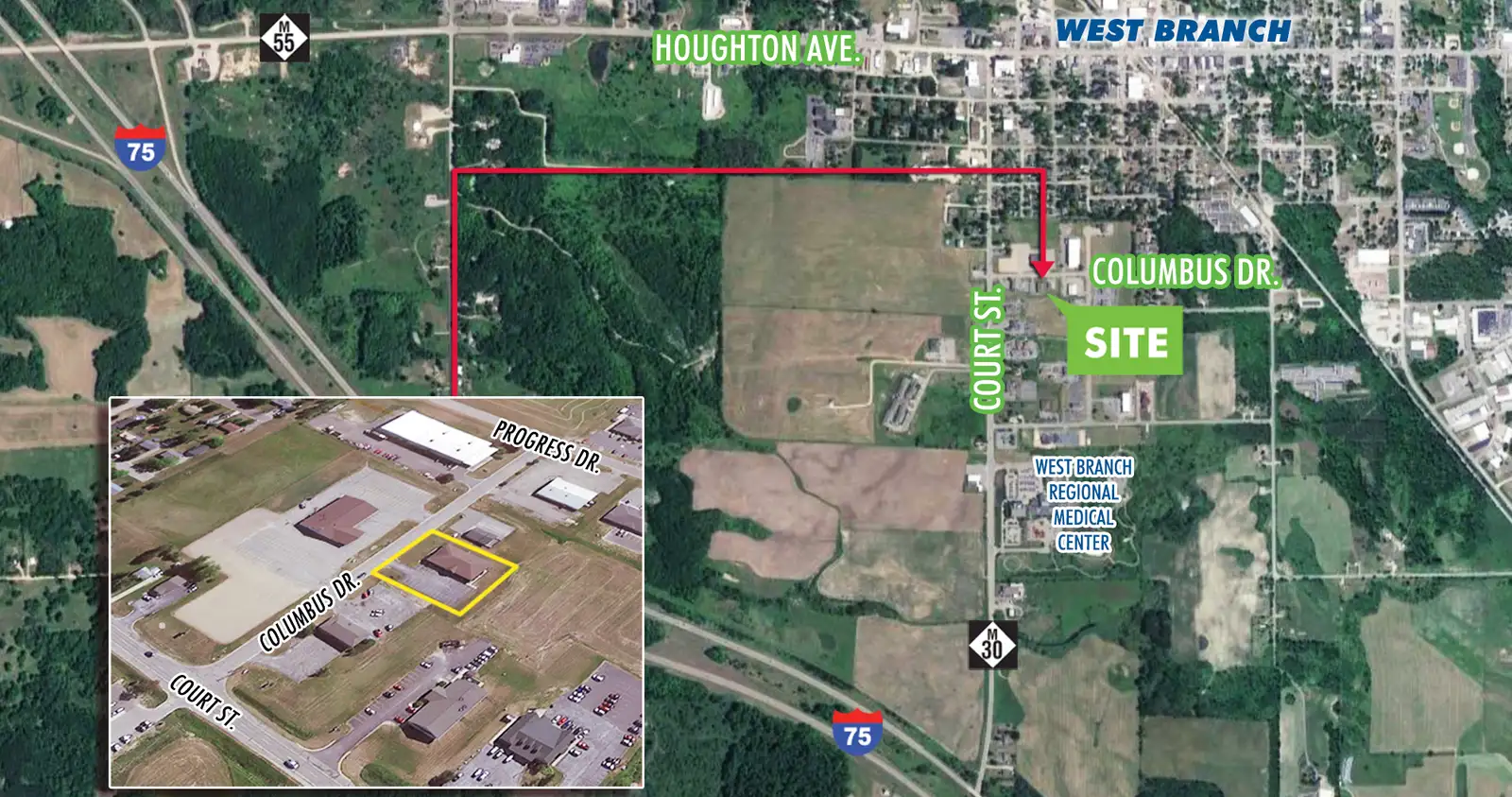 This 2,957 RSF medical office suite is ideally located near MyMichigan Medical Center West Branch, offering prime access to numerous clinical centers and senior are facilities. Built in 2000, the suite includes 3 exam rooms, 2 restrooms, a lab, sonogram room, reception, and waiting area. It is fully configured for medical use but can be converted into general office space. The property features 27 lighted parking spaces and is only 2 miles from the I-75 interchange and 1 mile from downtown West Branch, making it a convenient location for medical professionals or general businesses alike.