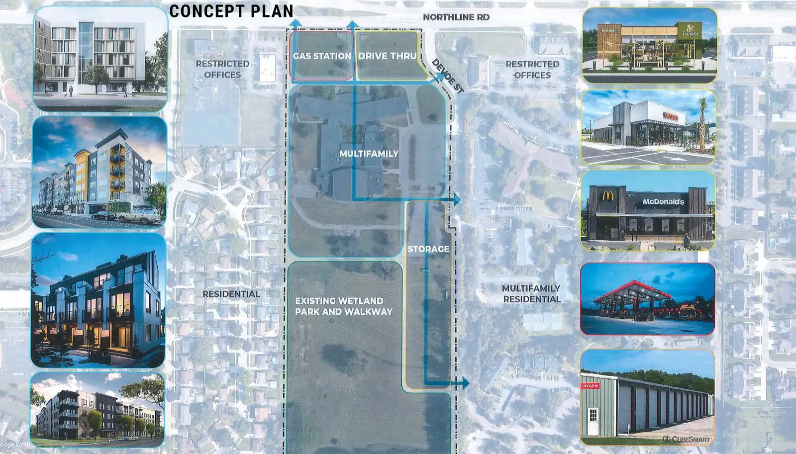 • Concept plans available that include: 2 outlots on Northline, Multi-family, & self-storage - contact broker for redevelopment information