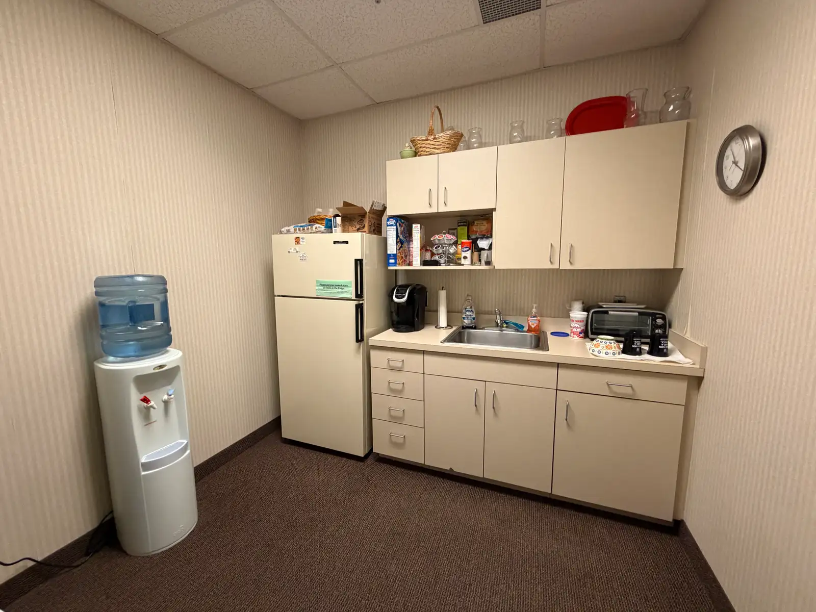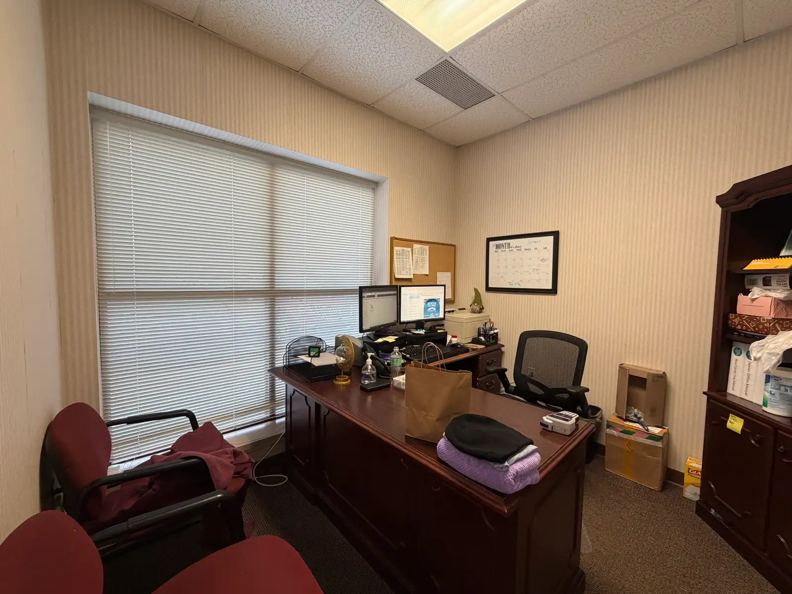 - Reception area, kitchenette, and private restroom