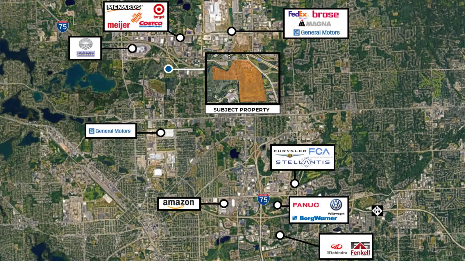 • Up to 115.64 acres of divisible land located at the SW corner of Joslyn Rd and Great Lakes Crossing Drive