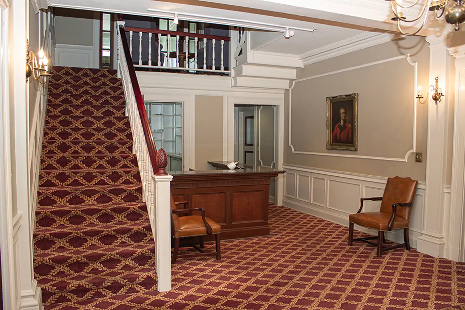 Discover this historic three-story office building, showcasing elegant turn-of-the-century architecture and timeless appeal. The space features 14 private offices, a formal reception area, open office space, ground-floor meeting and conference rooms, a kitchenette, and convenient basement storage.