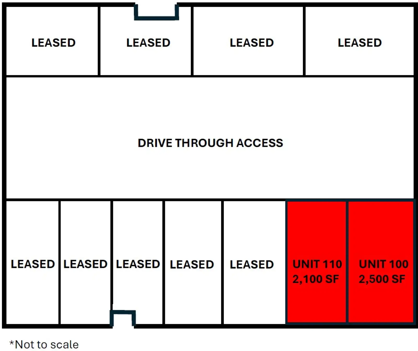 | Unit 110 | 1 | $12 /SF/Year | 2,100 - 4,600 SF |