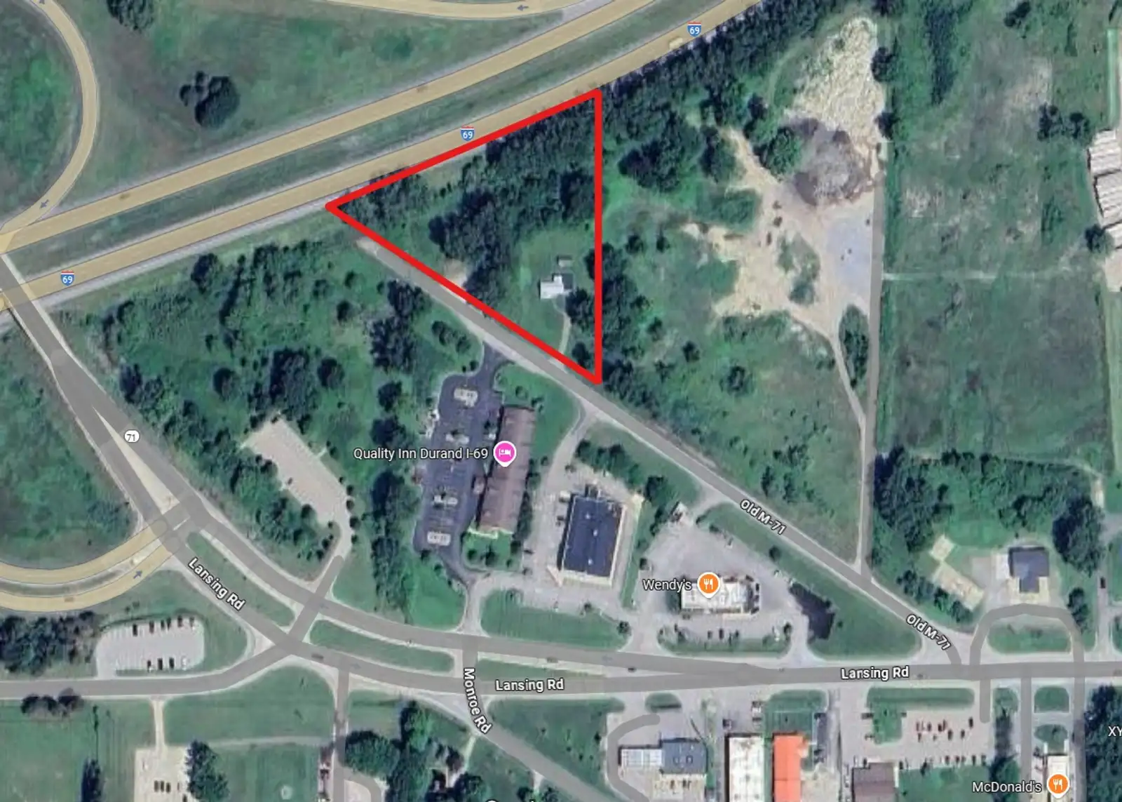 Premier development opportunity with this 3.75-acre parcel featuring 350 feet of frontage along I-69, offering outstanding visibility to thousands of vehicles daily. Ideally positioned just off the I-69/Lansing Rd exit, this high-traffic location is surrounded by established national brands and local service providers, making it a natural fit for commercial growth. Located along the main corridor from I-69 into Durand, the property provides convenient access from Lansing Rd and is perfectly suited for a variety of commercial uses—including a hotel, gas station, quick-service restaurant, or warehouse/distribution facility.