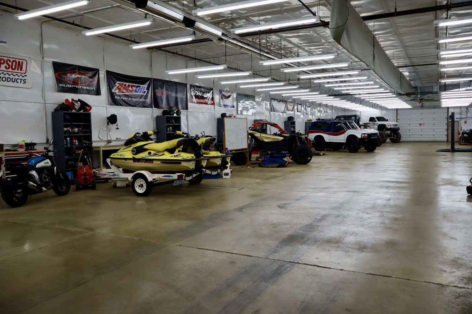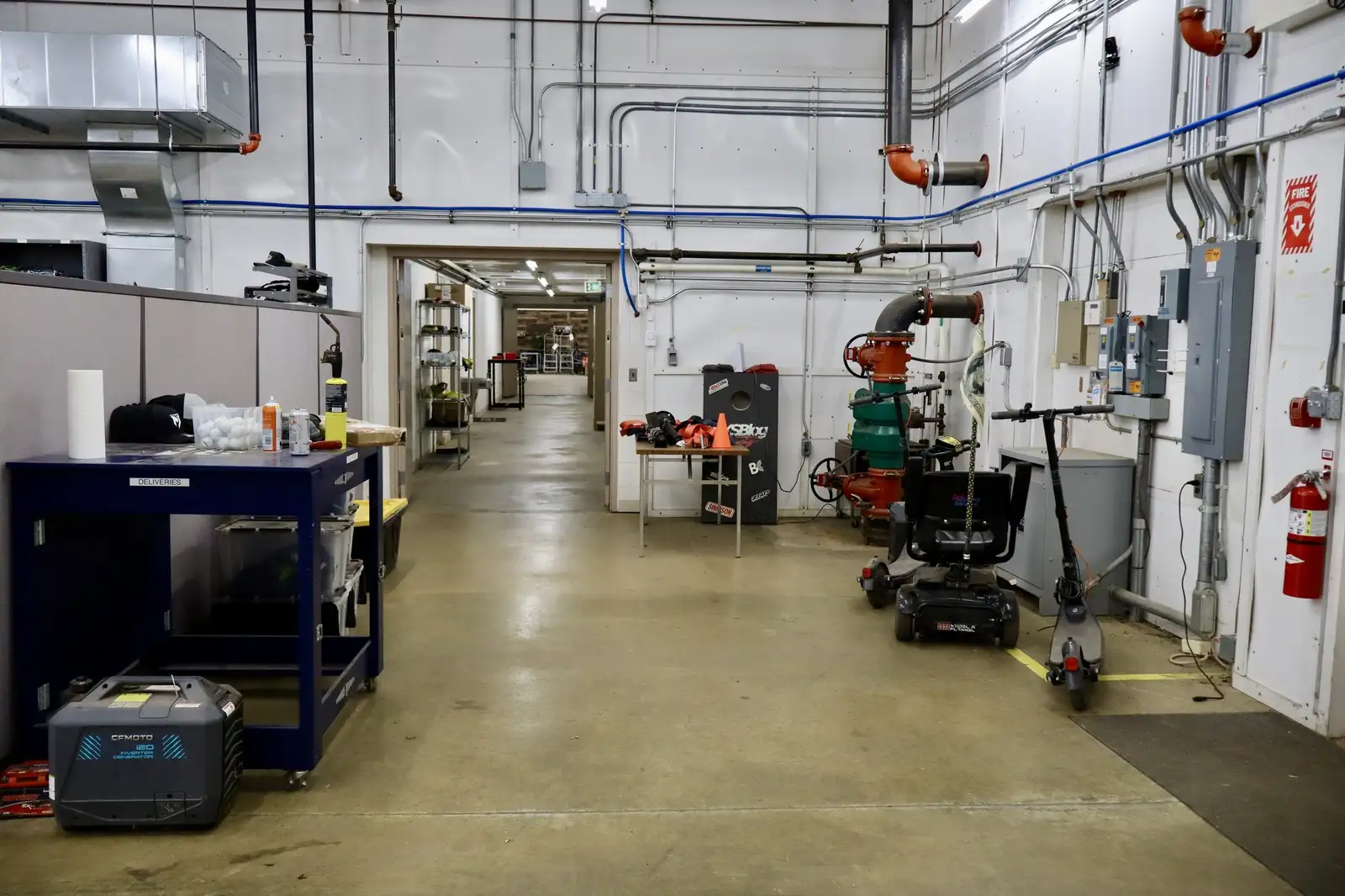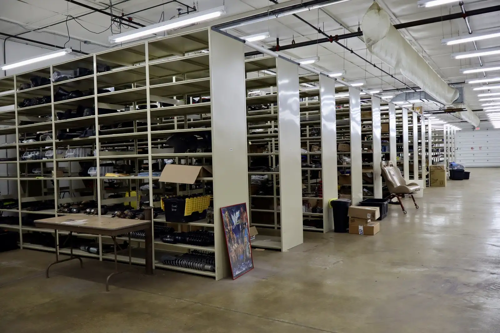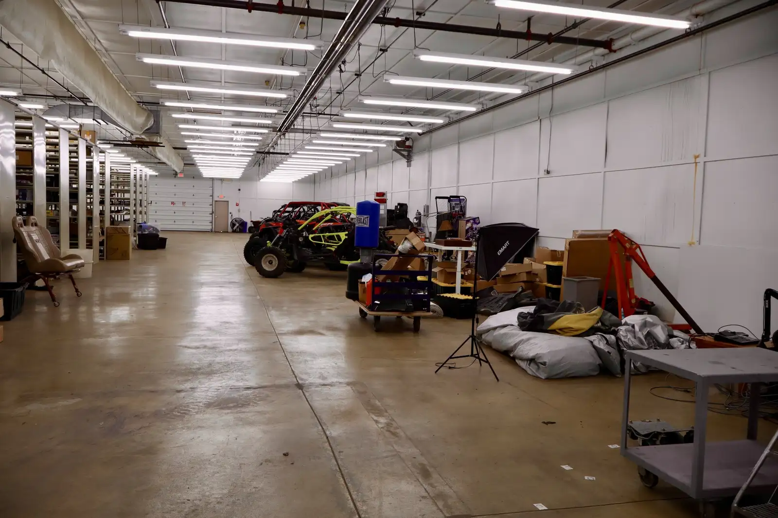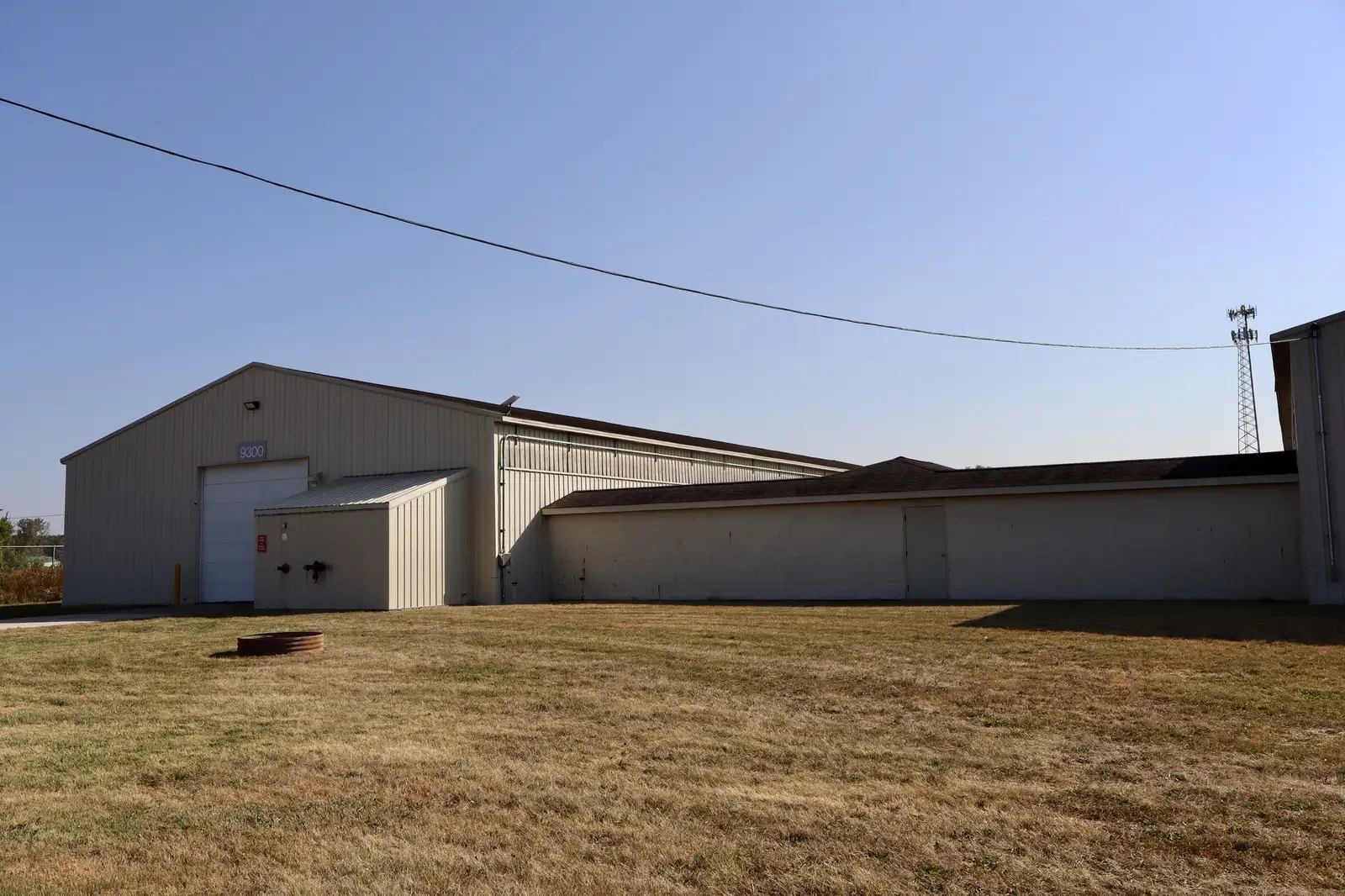 9300 Building: 9,600 sf , fully insulated, finished interior, heated, air conditioned, fully sprinklered, 2 14’ overhead doors, one on each end of building- attached-adjoined with 9400 building through a hallway with restroom and storage room.