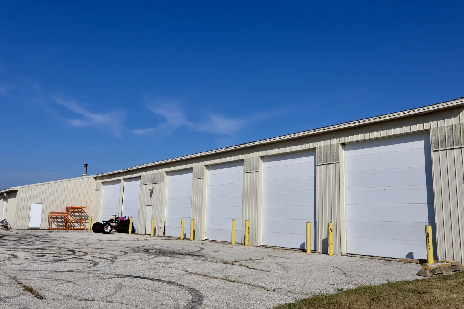 The 4 buildings consist of the following..9011 Building: 1 stand alone building 40’ x 50’ = 2000 sf previously was refrigerated but was converted to more of a paint booth, look area that is fully sprinklered, fully insulated, finished interior, 8’ dock height overhead door at north end of building.