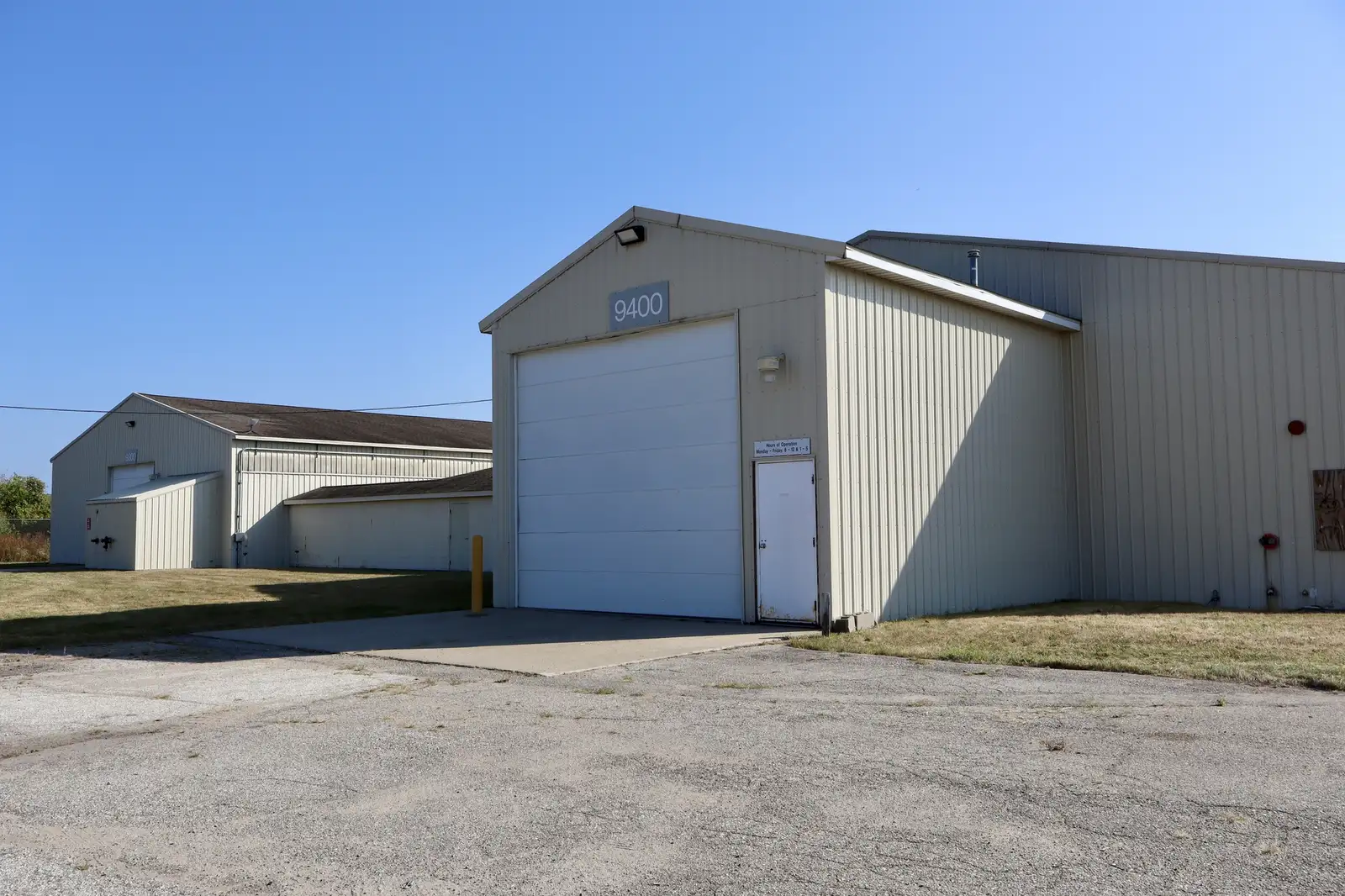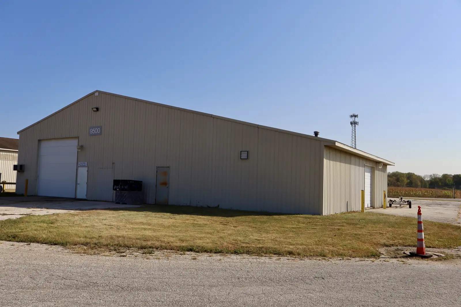9500 Building: Stand Alone 9,600 SF building, partially heated/partially cold storage, not sprinklered, attached 21’ x 51’ non heated lean-to, large area features 1 overhead door on East Side and 3 overhead doors on south side. Bonus- Exterior generator!