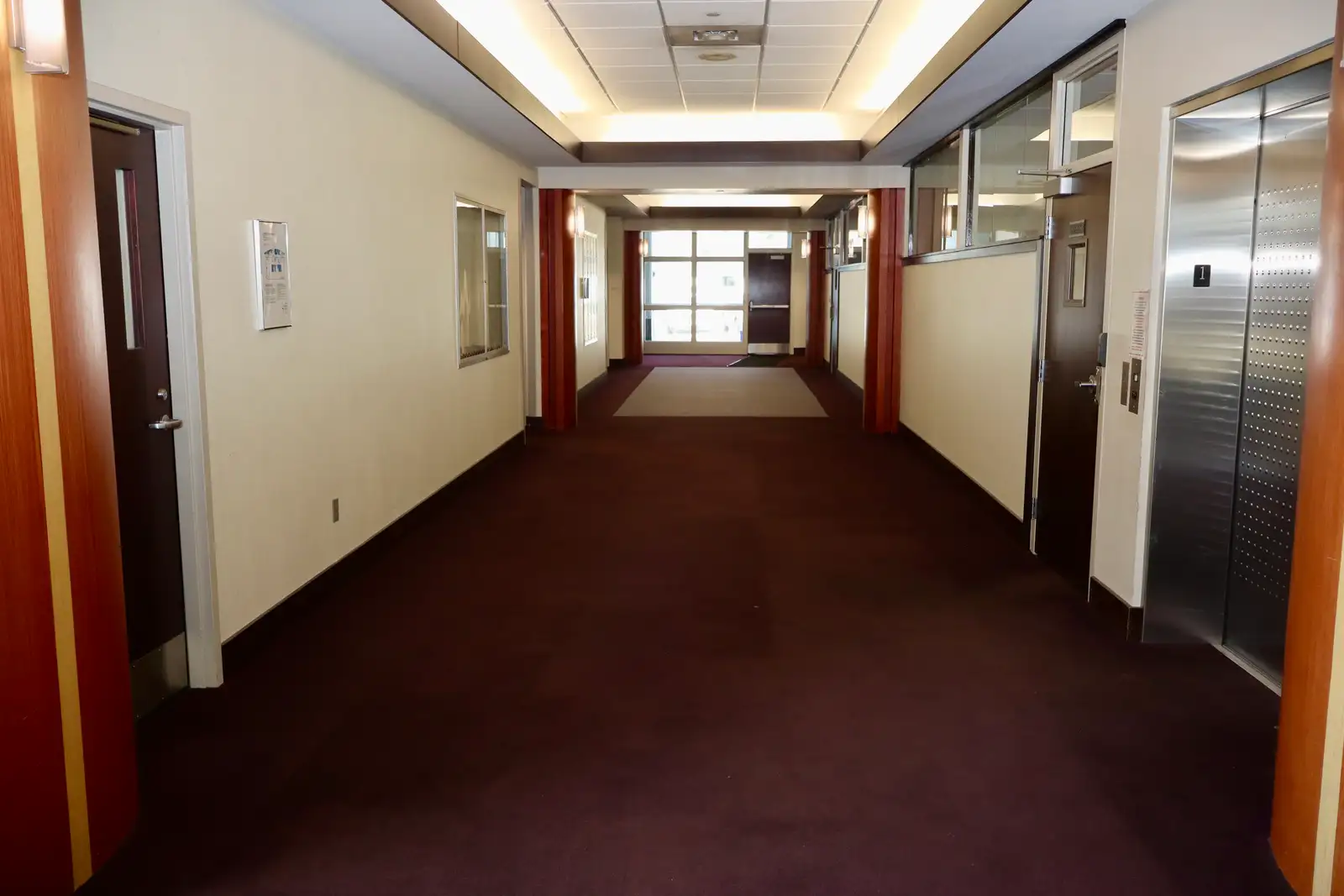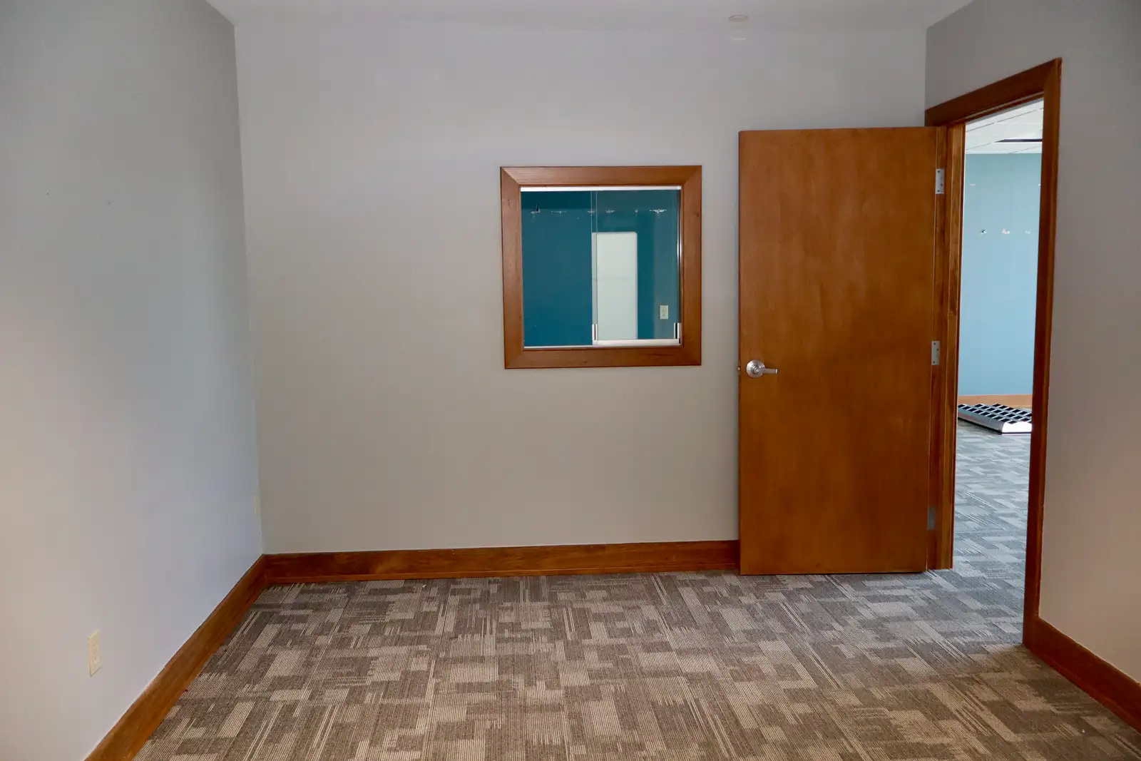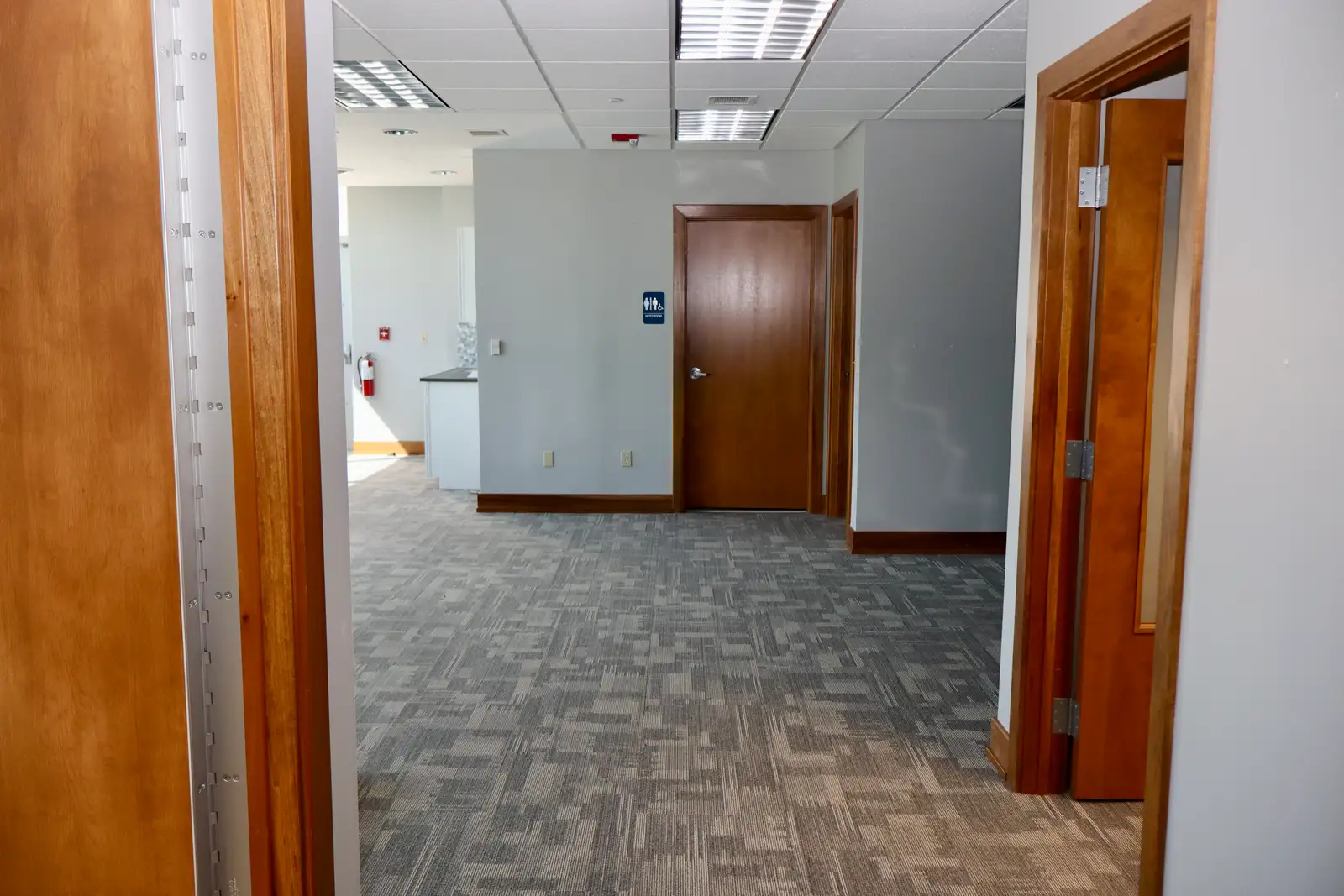 RATES START @ $15 PSF MG. Nice small professional office space featuring a large open space with expansive south-facing windows, three closed-door offices, small kitchenette and in-suite restroom. With an entrance in the main lobby as well as from the side parking lot, this suite is well-suited for a variety of uses.
