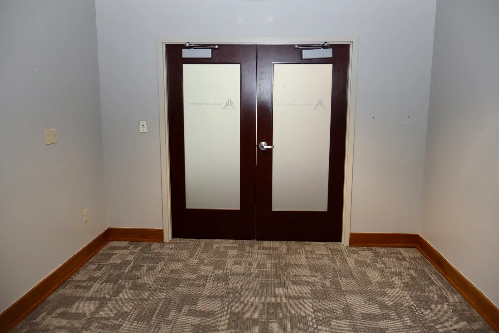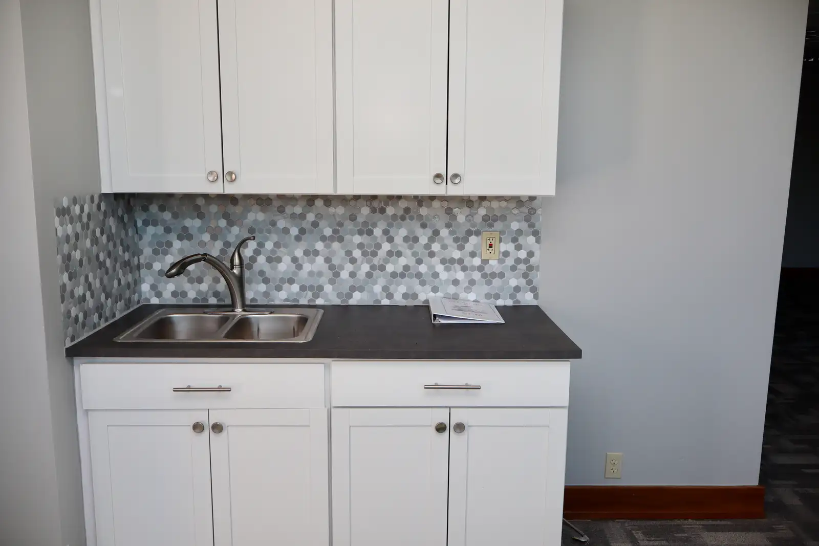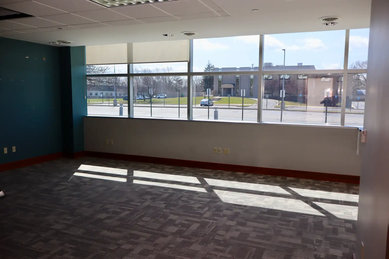 RATES START @ $15 PSF MG. Nice small professional office space featuring a large open space with expansive south-facing windows, three closed-door offices, small kitchenette and in-suite restroom. With an entrance in the main lobby as well as from the side parking lot, this suite is well-suited for a variety of uses.