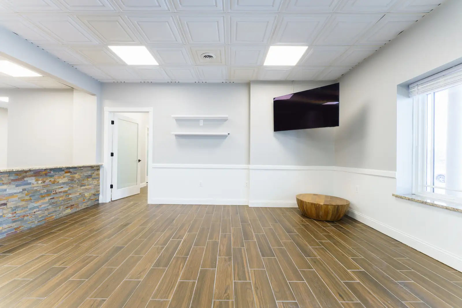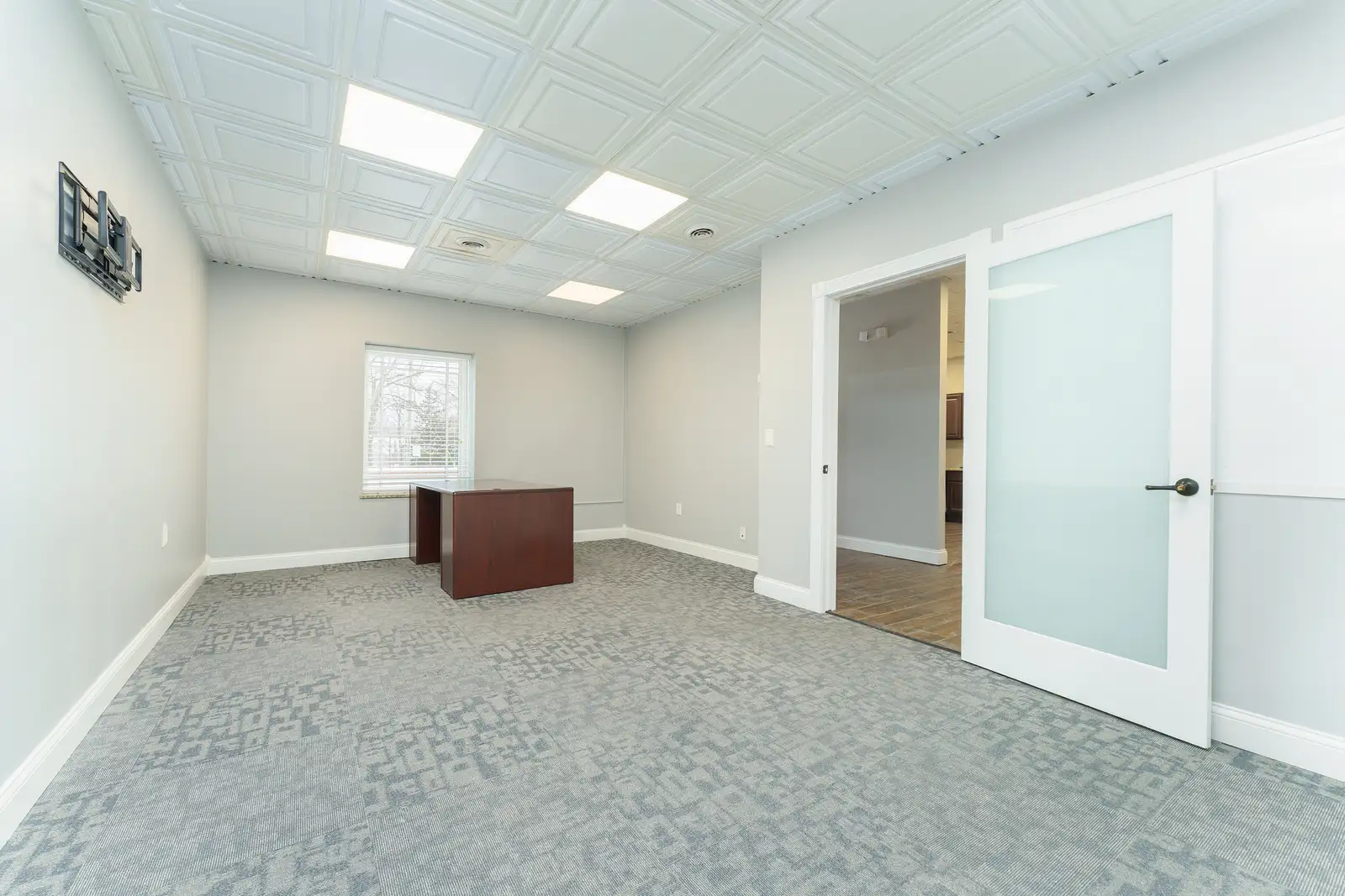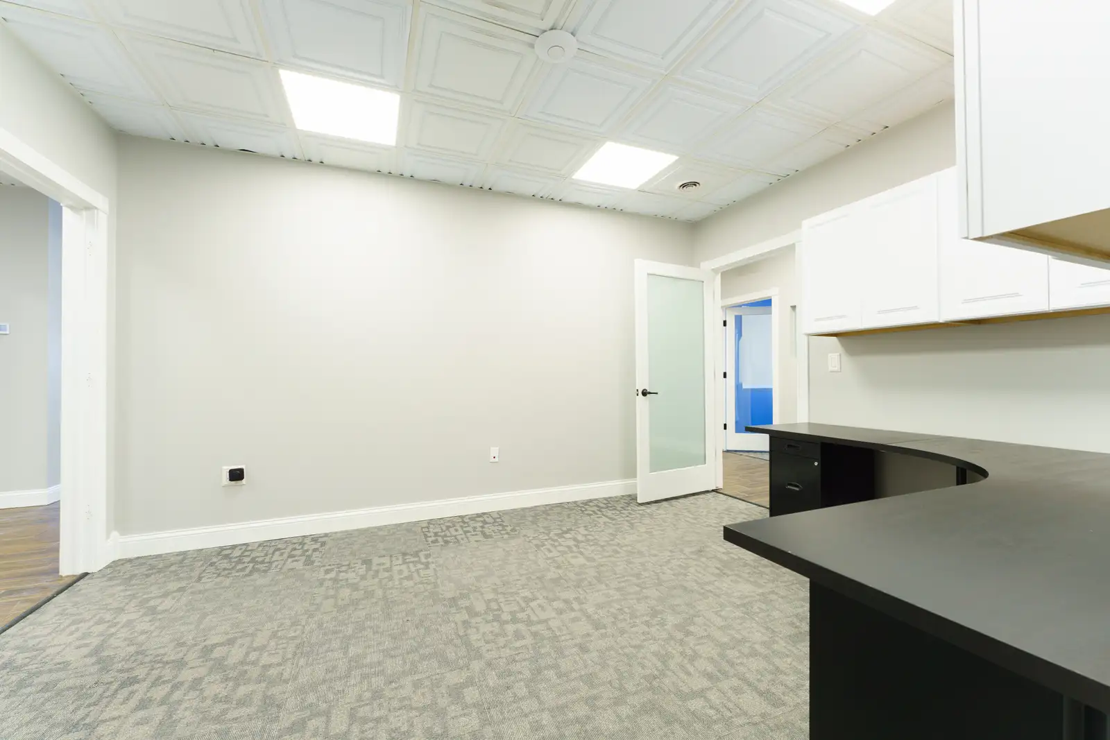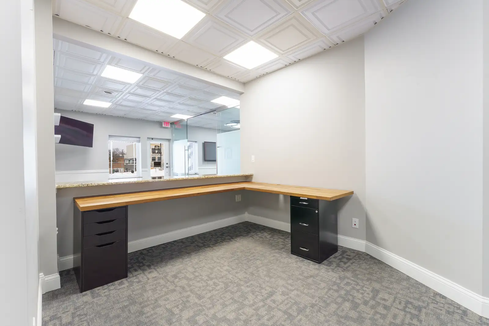 Perfect location just one block from Main St and all of the shopping, entertainment and restaurant options to enjoy. Imagine the opportunity to host clients at your office, then having a short walk to take them to lunch or for dinner after work. The space has been recently updated with premium finishes. A Large entry/waiting area with ceramic tile floors opens up to a glass enclosed conference room, reception desk and visitor bathrooms. Also included are 3 large private offices, a staff work area, kitchenette, an employee bathroom and a large area that has 4 cubicle work stations. A huge bonus is a private parking lot with dedicated spaces for this suite. This is a sub-lease that will require landlord approval.