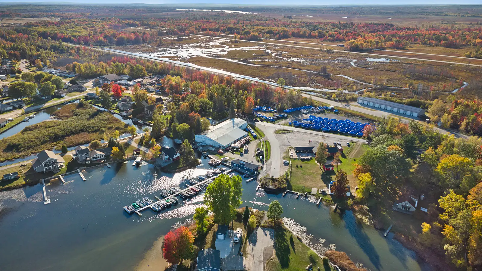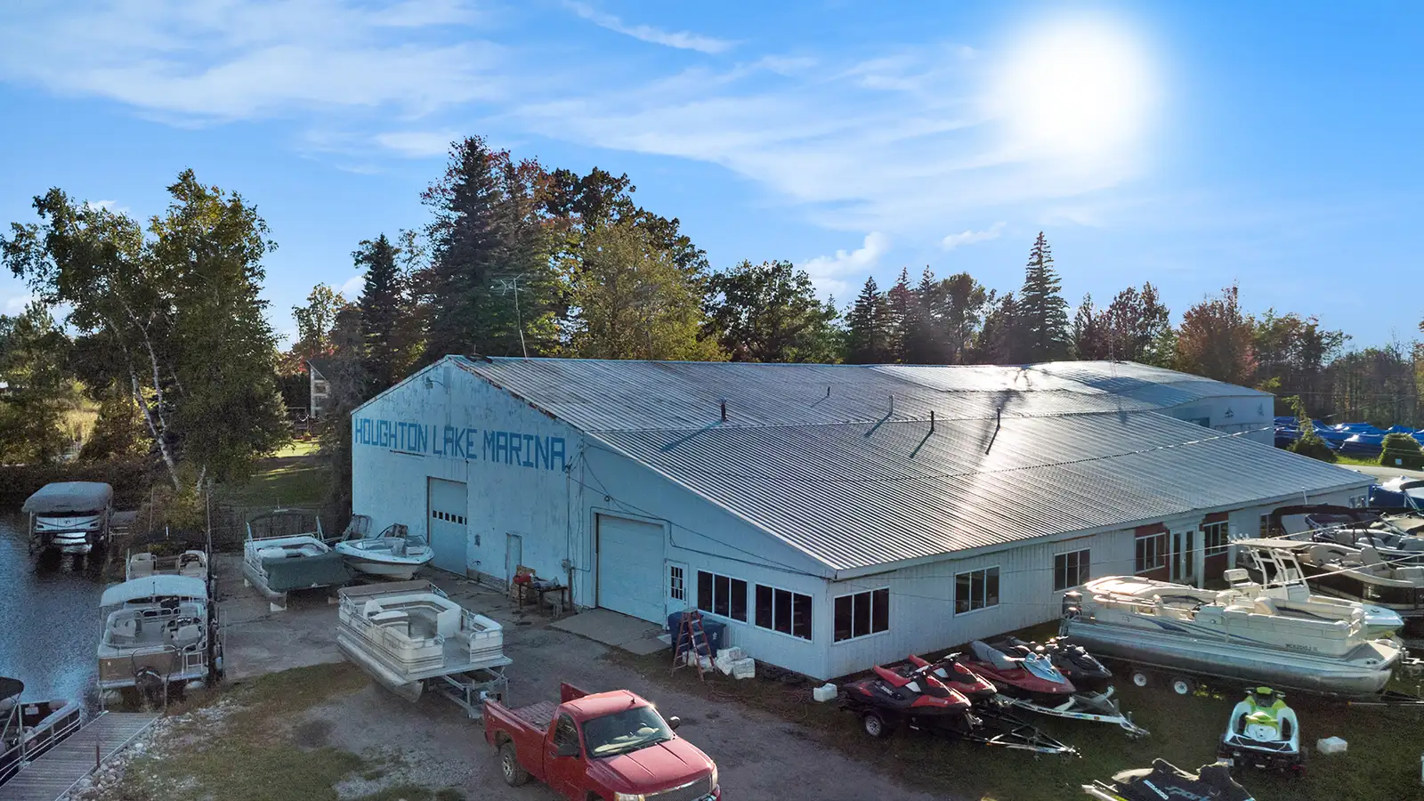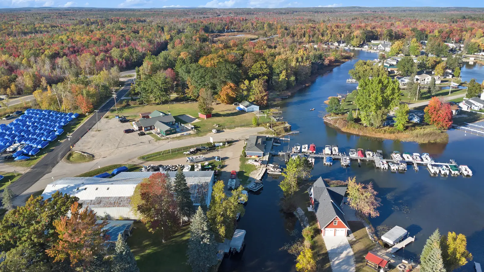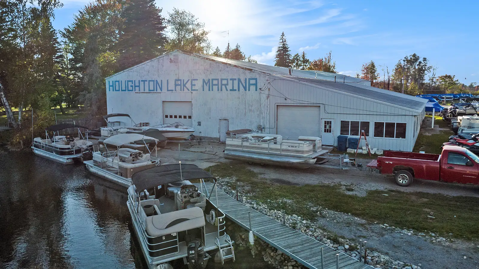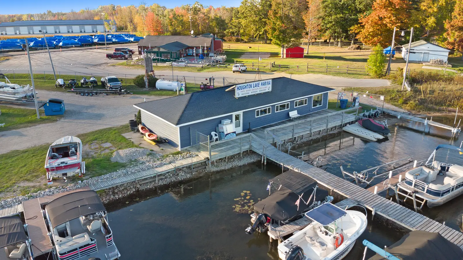 This prime waterfront property in Northern Michigan offers a unique redevelopment opportunity with 280 feet of shoreline on Houghton Lake. The existing marina features a private boat launch, gas dock, trailer storage, and three buildings totaling over 21,000 square feet. The property is ideal for multi-family development or a lake life adventure destination, with its spacious layout, abundant amenities, and convenient location.