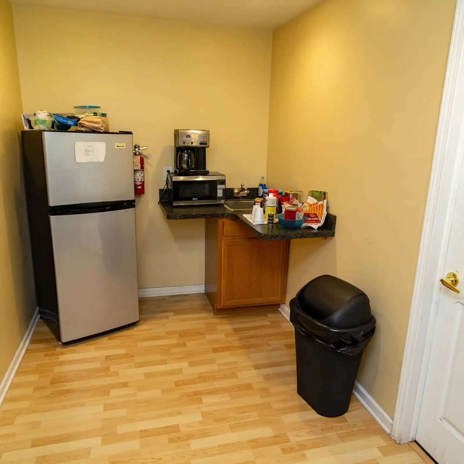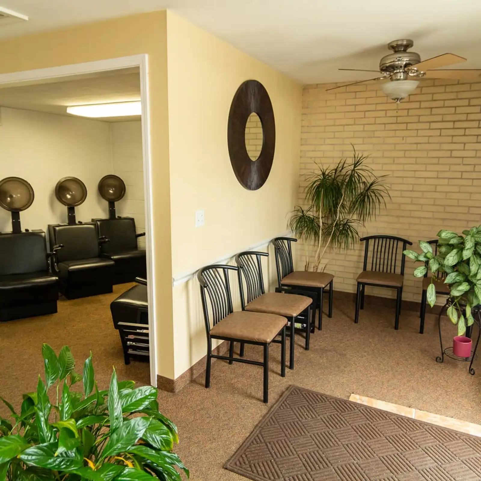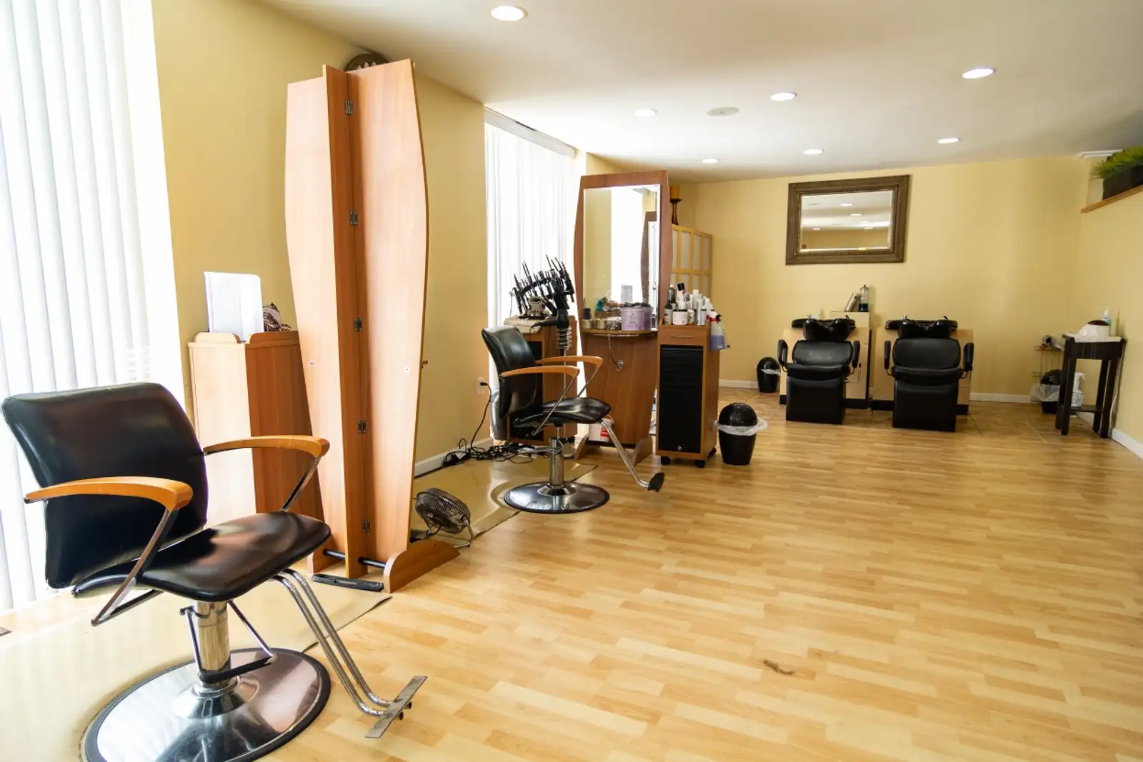 This building has been completely remodeled. One side is a beauty salon the other side a barber shop.