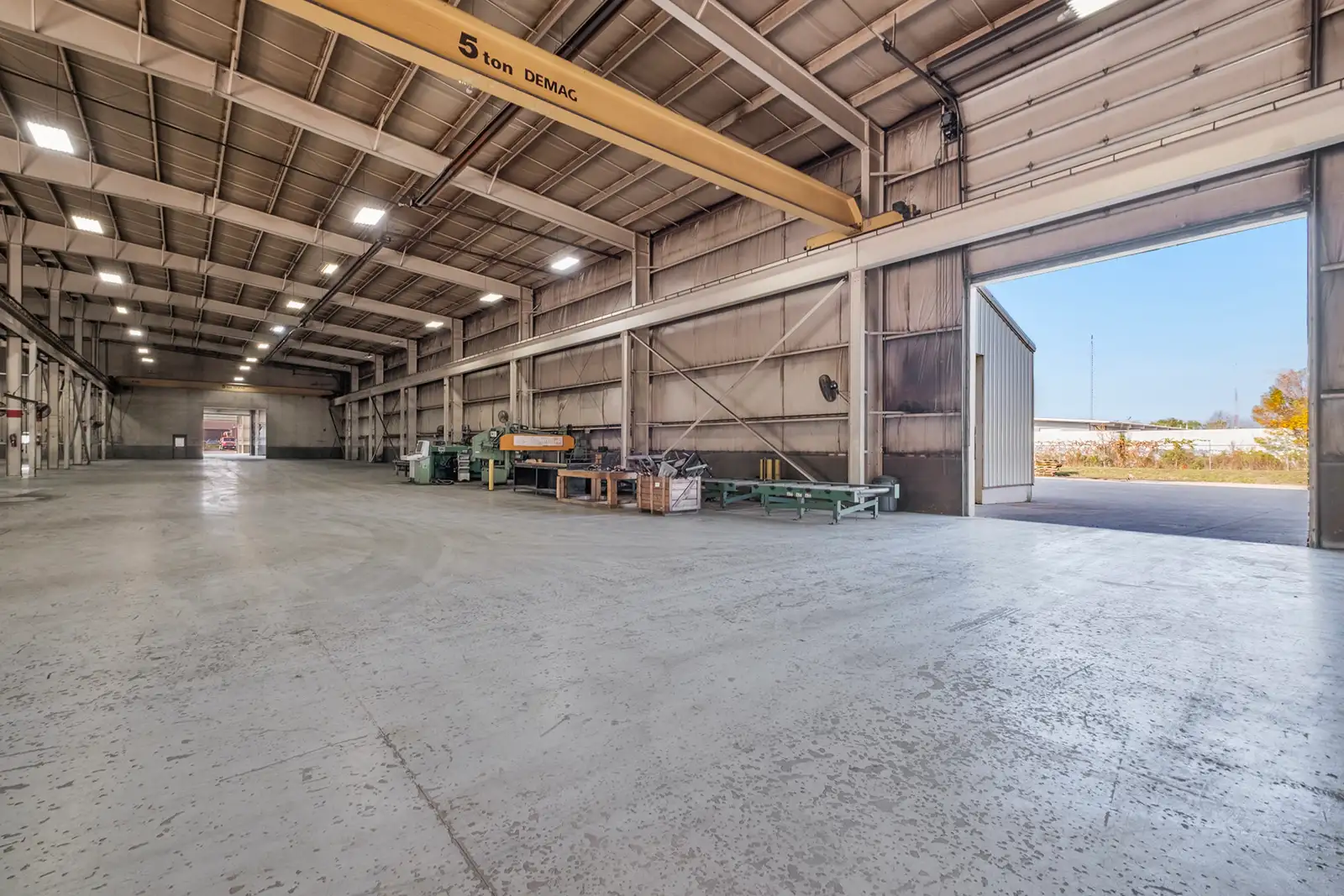 Rare Industrial Opportunity – 58,546(+/-) sq ft on 8.1 fenced acres featuring 11 cranes, reinforced outdoor areas with 10 inches of concrete and 12 inches of limestone for heavy equipment, and an impressive office space with reception, conference room, and private offices. All office furniture stays, making this a true turn-key facility ideal for world class corporate headquarters or heavy industrial operations—an unmatched opportunity in today’s market.