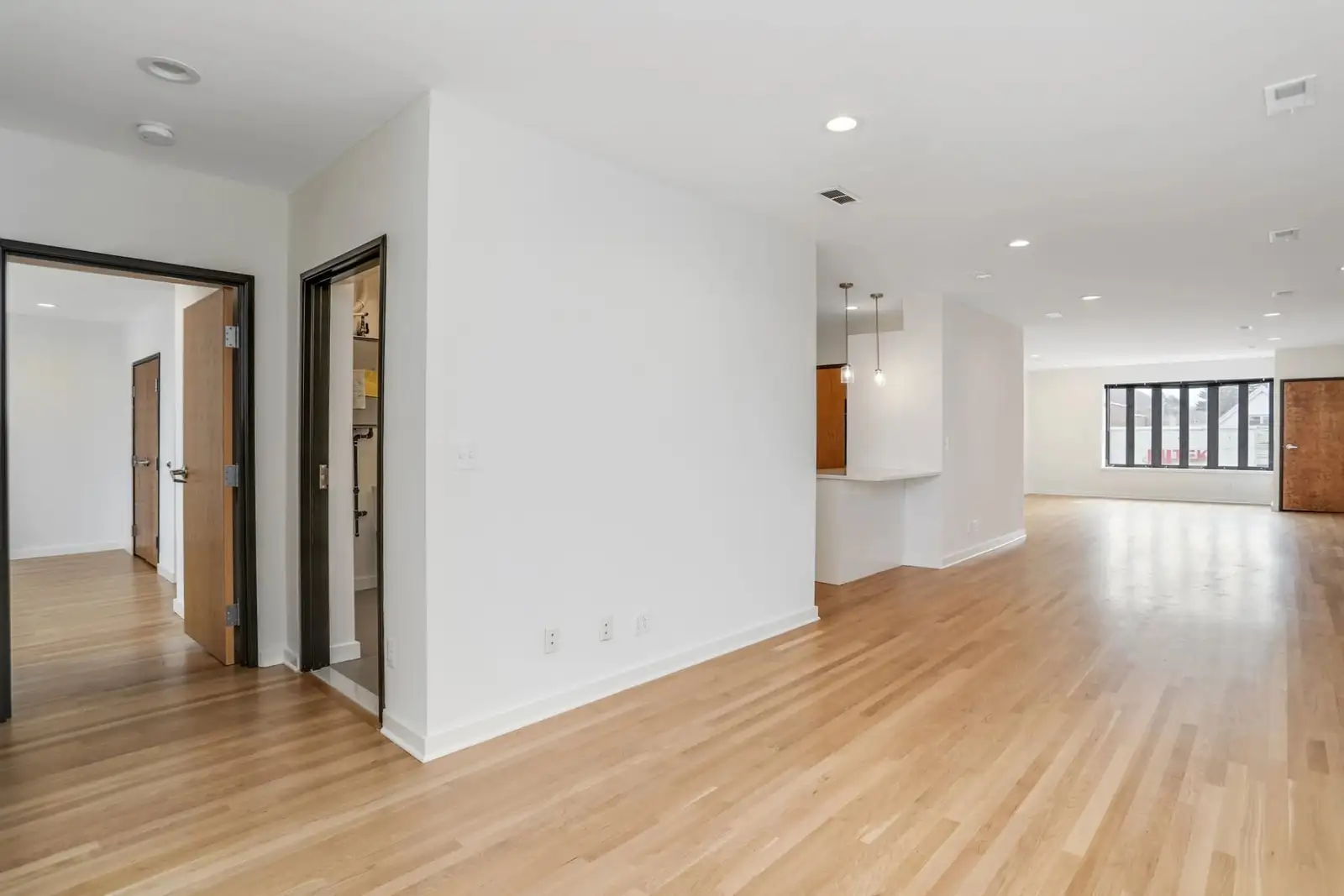 The remodeled kitchen features high-end cabinetry and on-trend Quartz countertops and is fully-equipped with all-new, modern, stainless steel appliances and fixtures, including an induction cooktop and ventilation hood. The kitchen also features a large pantry with built-in shelving. The loft has one full bathroom and one powder room. The full bathroom features a vanity with a Quartz countertop and a shower fitted with beautiful European-style glass doors, marble tile and modern plumbing fixtures. Gorgeous original hardwood floors run throughout the space and the loft has ample storage space with numerous closets, an in-unit laundry room with washer and dryer hookups and a large storage room with built-in shelving. Energy-efficient LED lighting and a tankless hot water heater help to reduce overall energy costs.