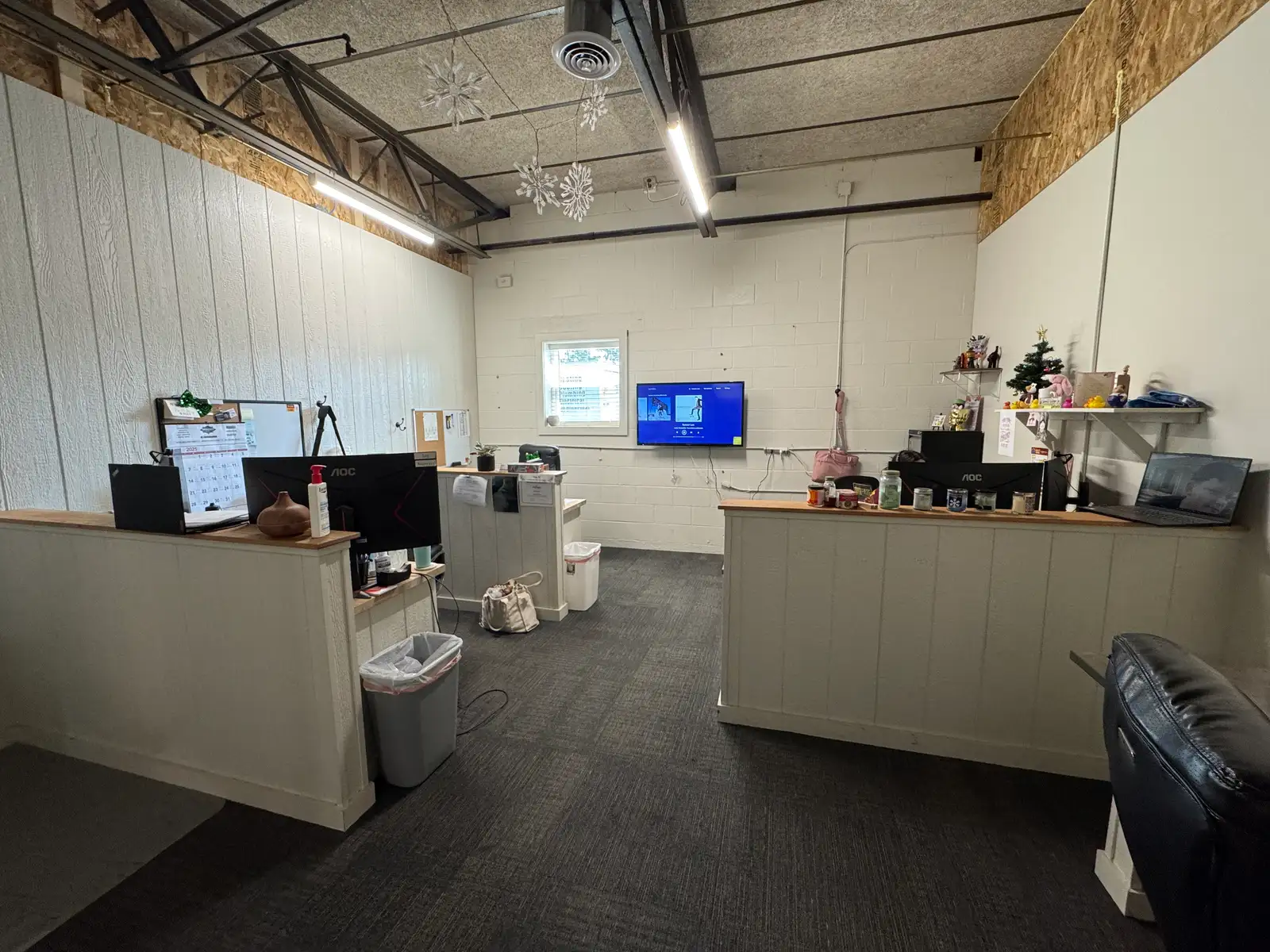Zoned I-1 (Limited Industrial), the building is ideal for a range of light industrial, tech, or service-oriented businesses. The suite includes a private office, open bullpen workspace, two private restrooms, a 10’ x 8’ grade-level overhead door and 12.5’ ceiling height. The property is equipped with 200-amp, 240V, 3-phase power and features ample surface parking at the door for employees and clients.