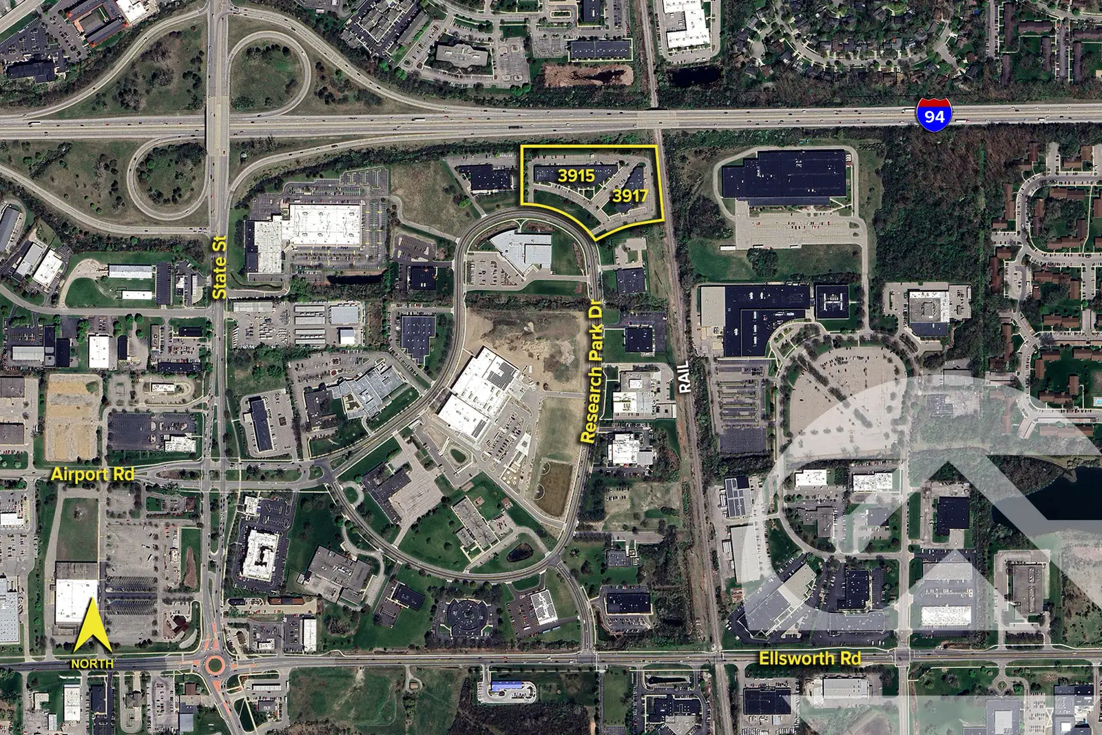 Intech of Ann Arbor is a 52,927 sq. ft. complex of two (2) adjacent multi-tenant buildings that sit on 5.81 acres of land located in the NEC of Research Park comprised of 34,833 sq. ft. at 3915 Research Park Drive and 18,094 sq. ft. at 3917 Research Park Drive. Adjacent Unit B-4 (5,348 sq. ft.) and Unit B-7 (3,654 sq. ft.) at 3917 Research Park can be combined to provide 9,002 sq. ft.