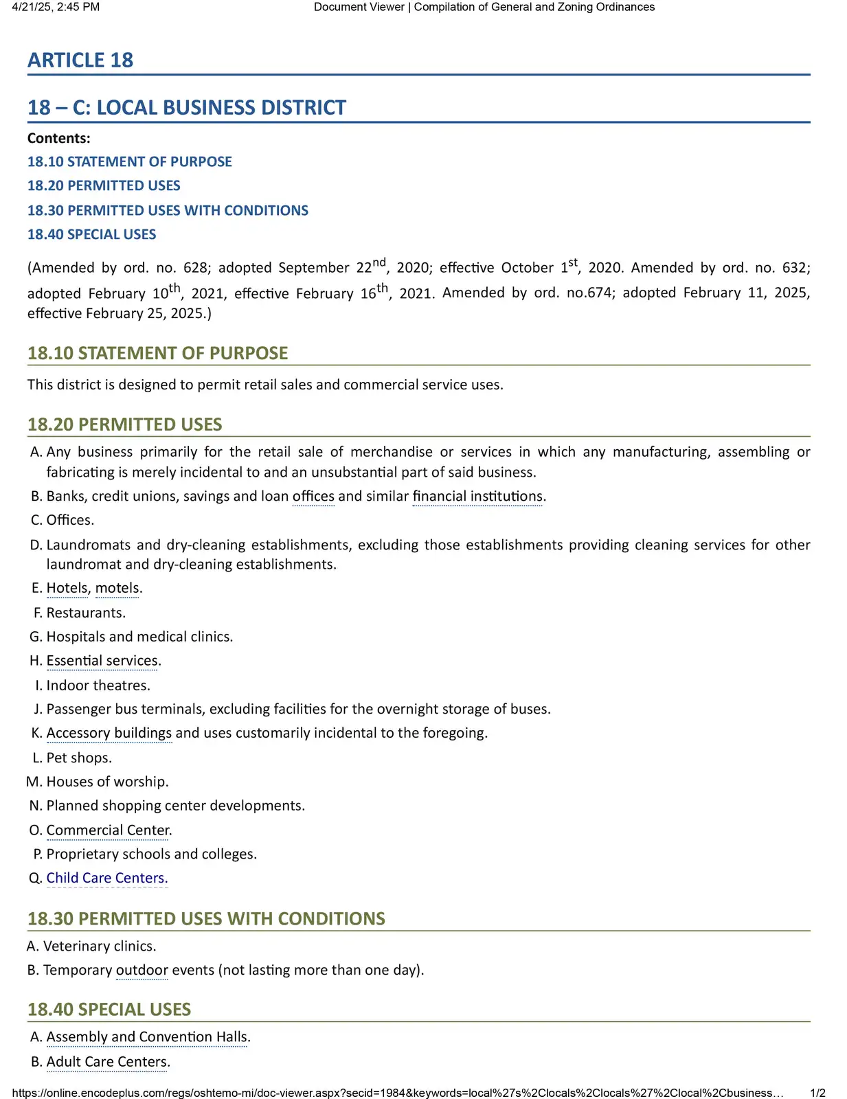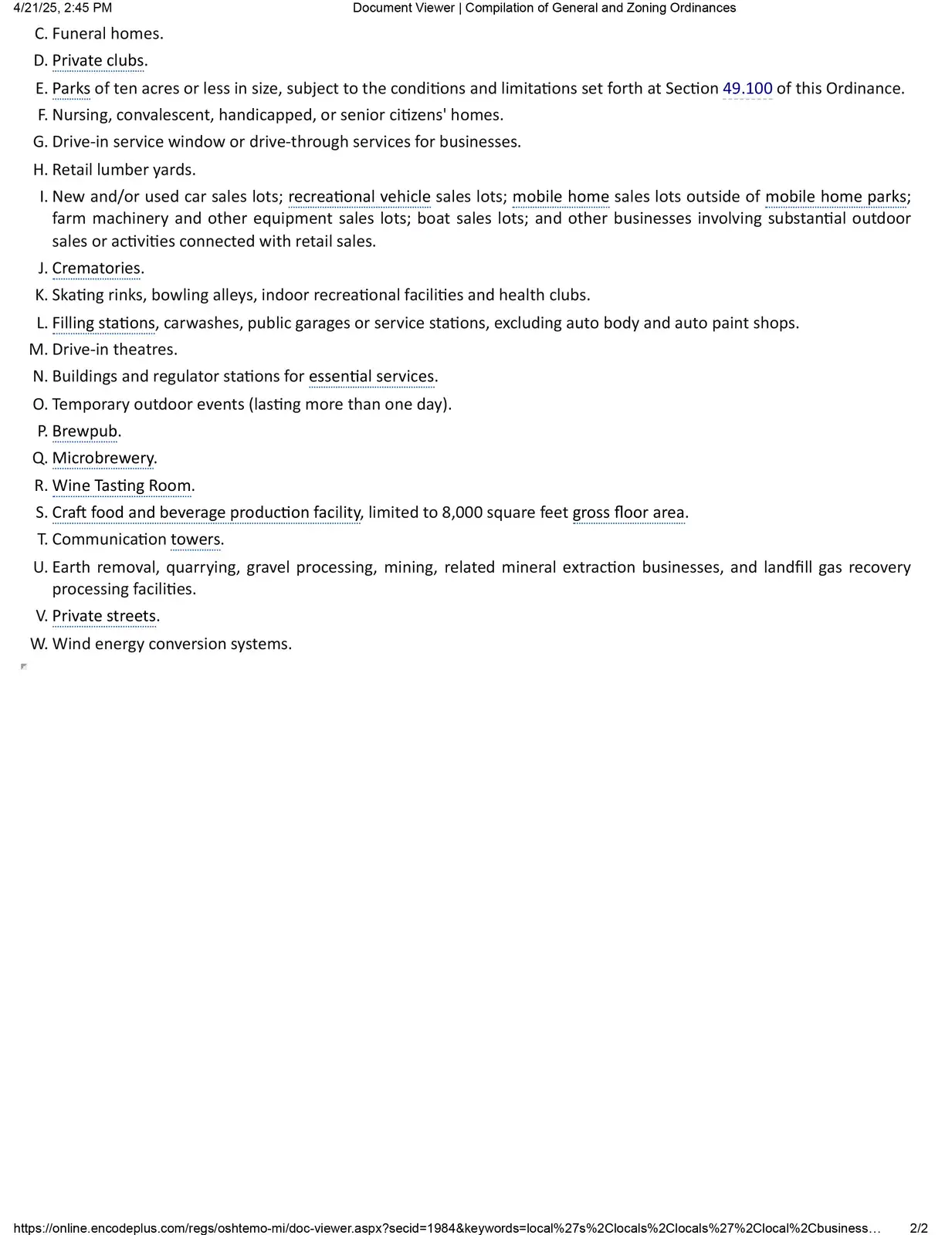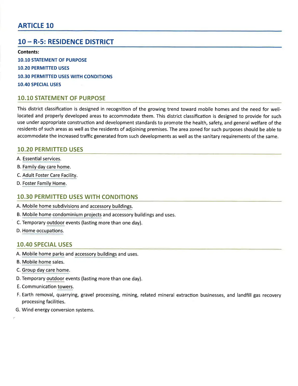 Secondary Uses: Mobile Home Park