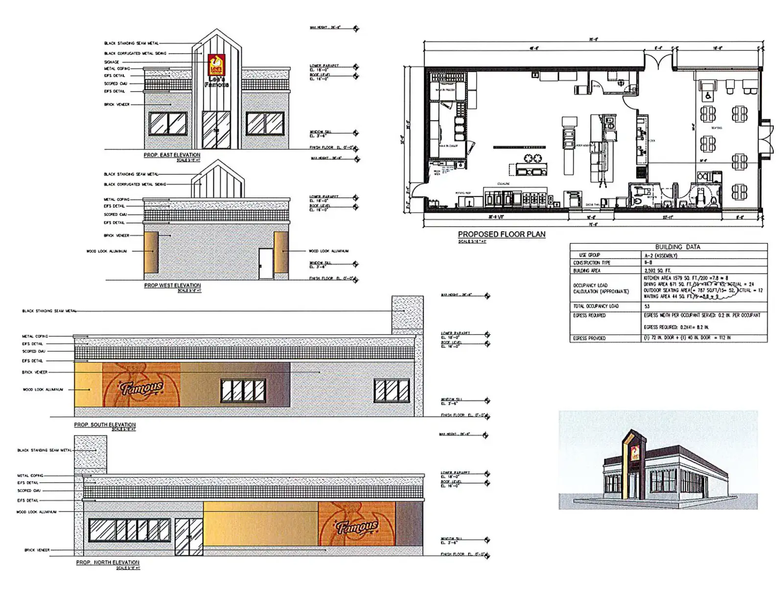 Proposed Retail/Restaurant with drive-thru and outside seating.