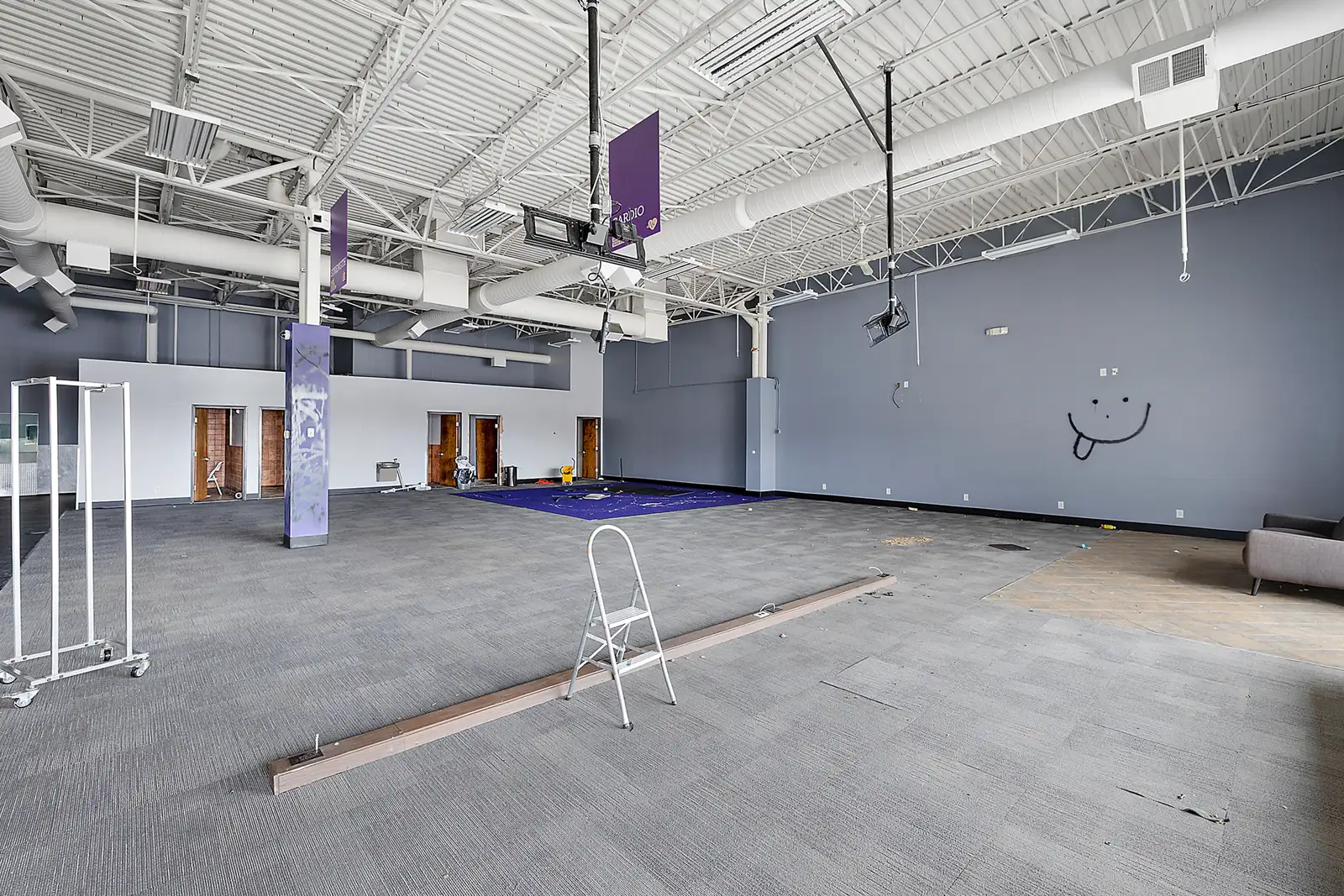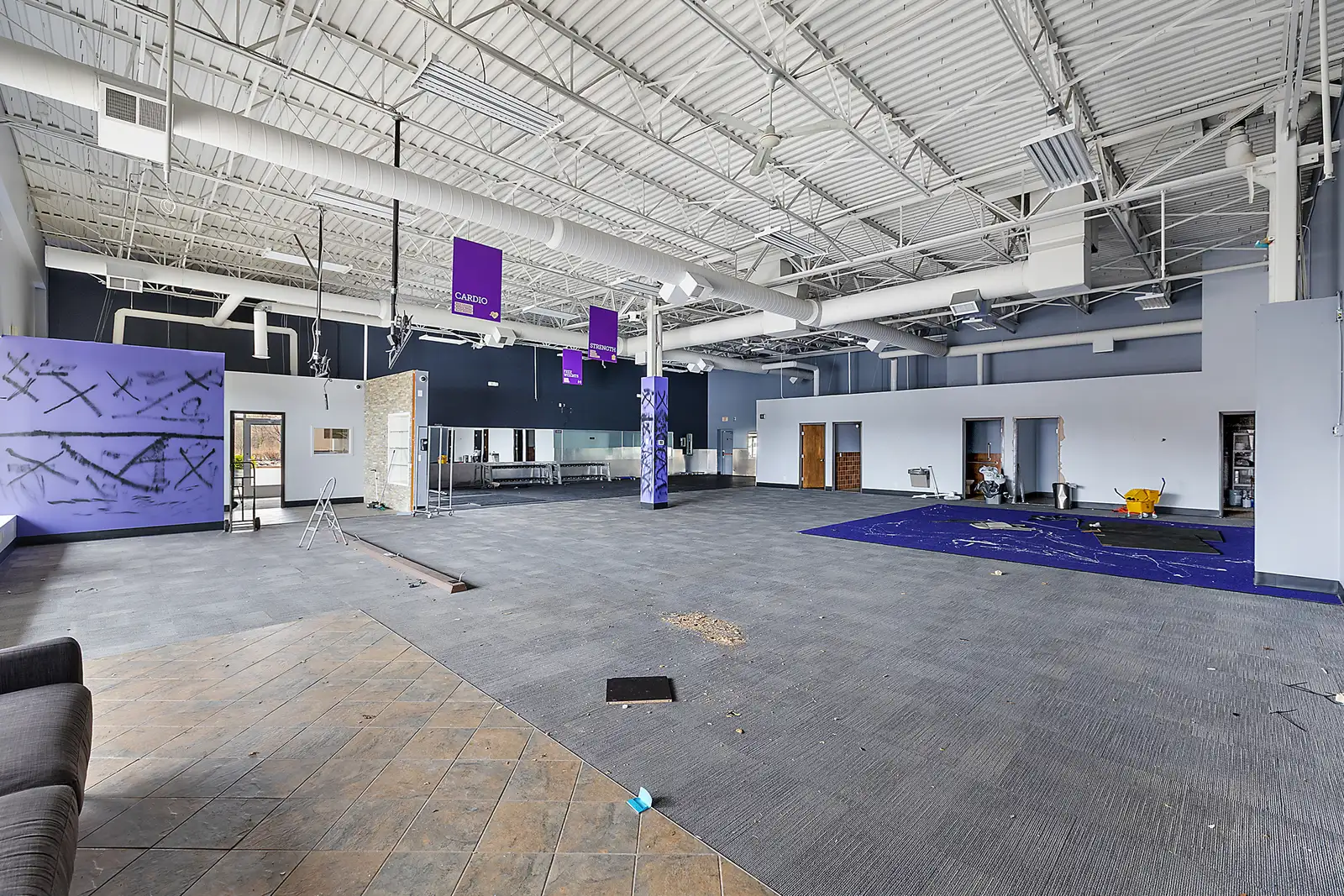 - Former Anytime Fitness Space - high ceilings, open floor plan, 3 baths (2 equipped with showers)