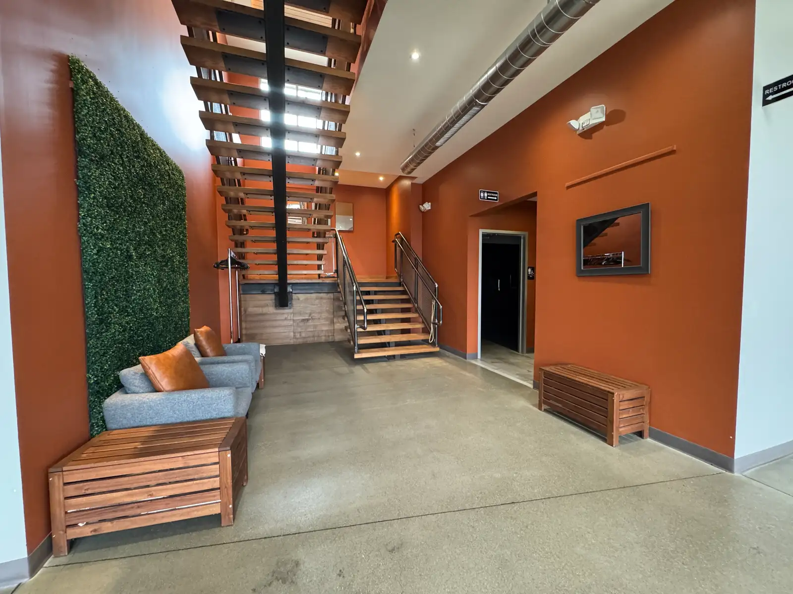 • Boasts soaring exposed ceilings, ranging from 19’ to 24’, with modern spiral ductwork that enhances the open, industrial aesthetic.