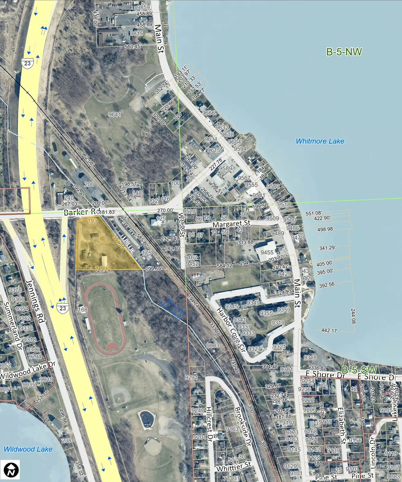 Located just east of US-23 north of Whitmore Lake High School athletic fields