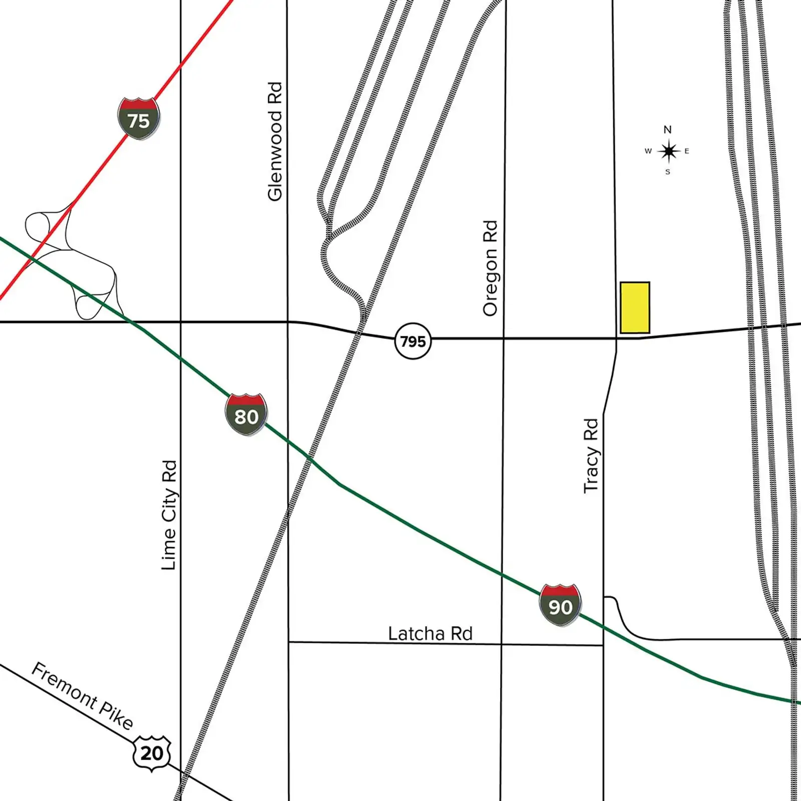 .95 miles from Cedar Business Park, 3 miles from Owens Community College and across from the newly constructed First Solar buildings.